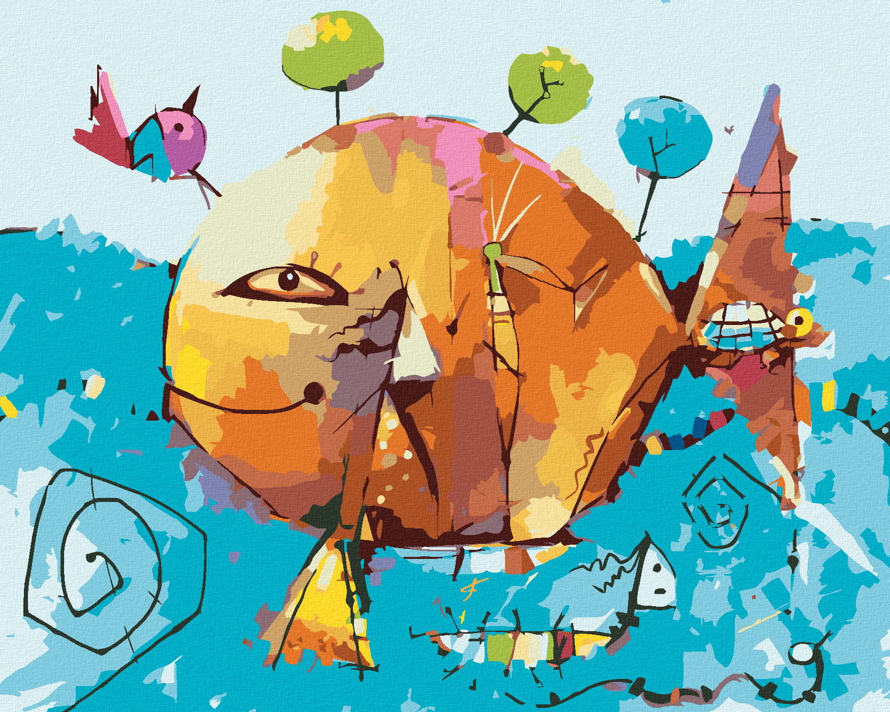 Malen nach Zahlen - ABSTRAKTER FISCH MIT SCHILDKRÖTE