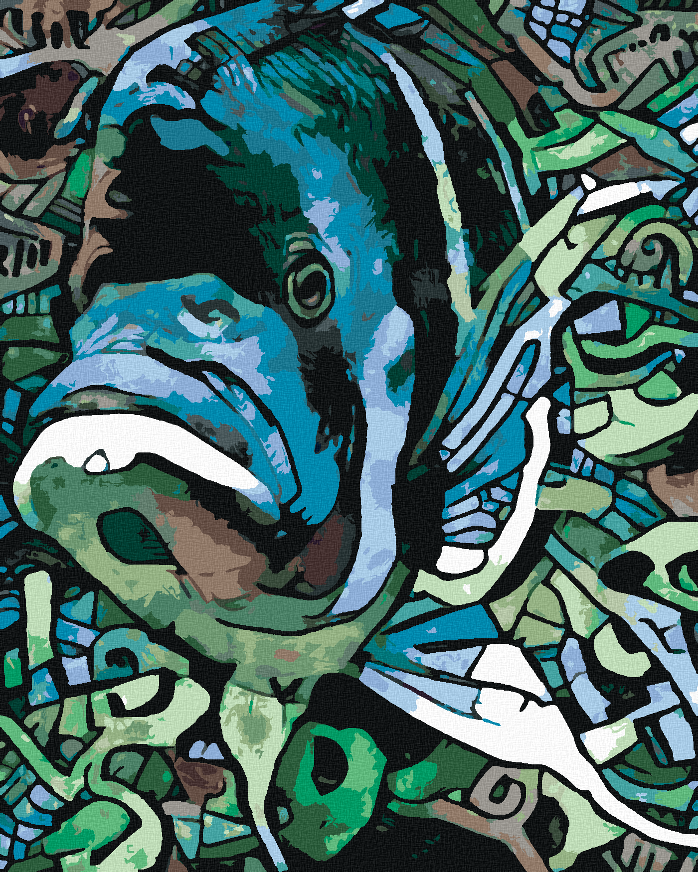 Malen nach Zahlen - ABSTRAKTER GRÜNER FISCH