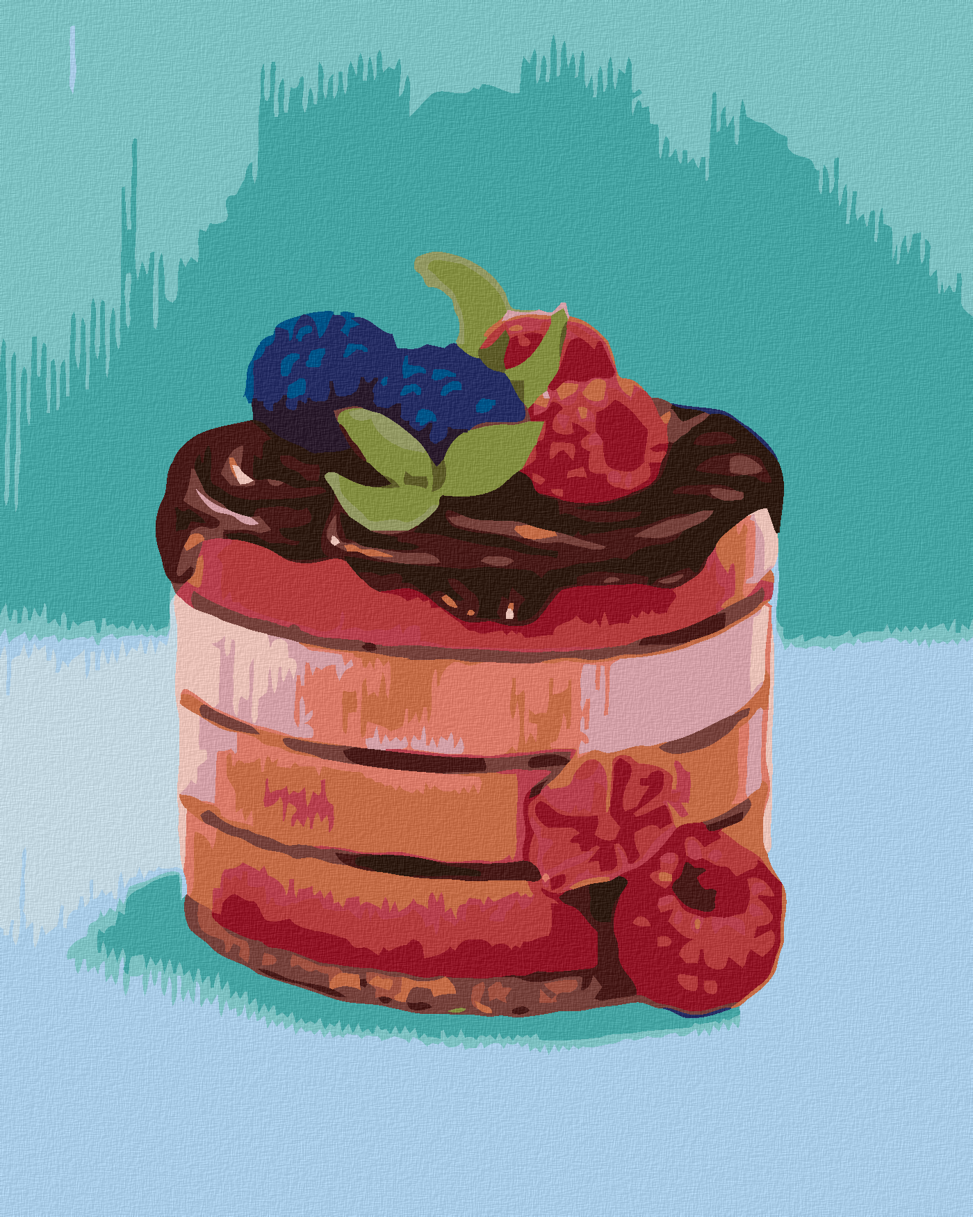 Malen nach Zahlen - HIMBEERTORTE MIT SCHOKOLADE (MYROSLAVA VOLOSCHUK)