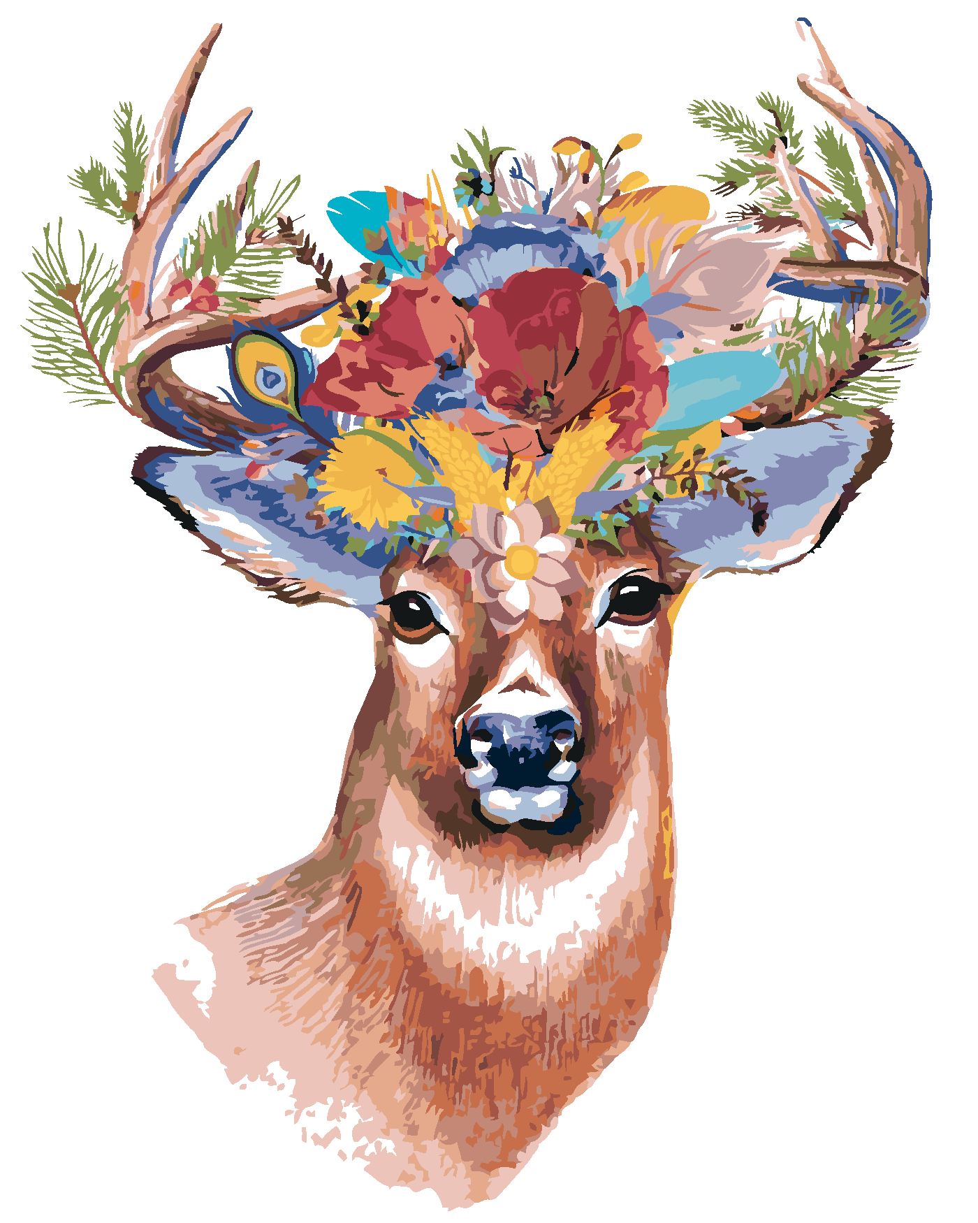 Malen nach Zahlen - HIRSCH UND BLUMENKRONE