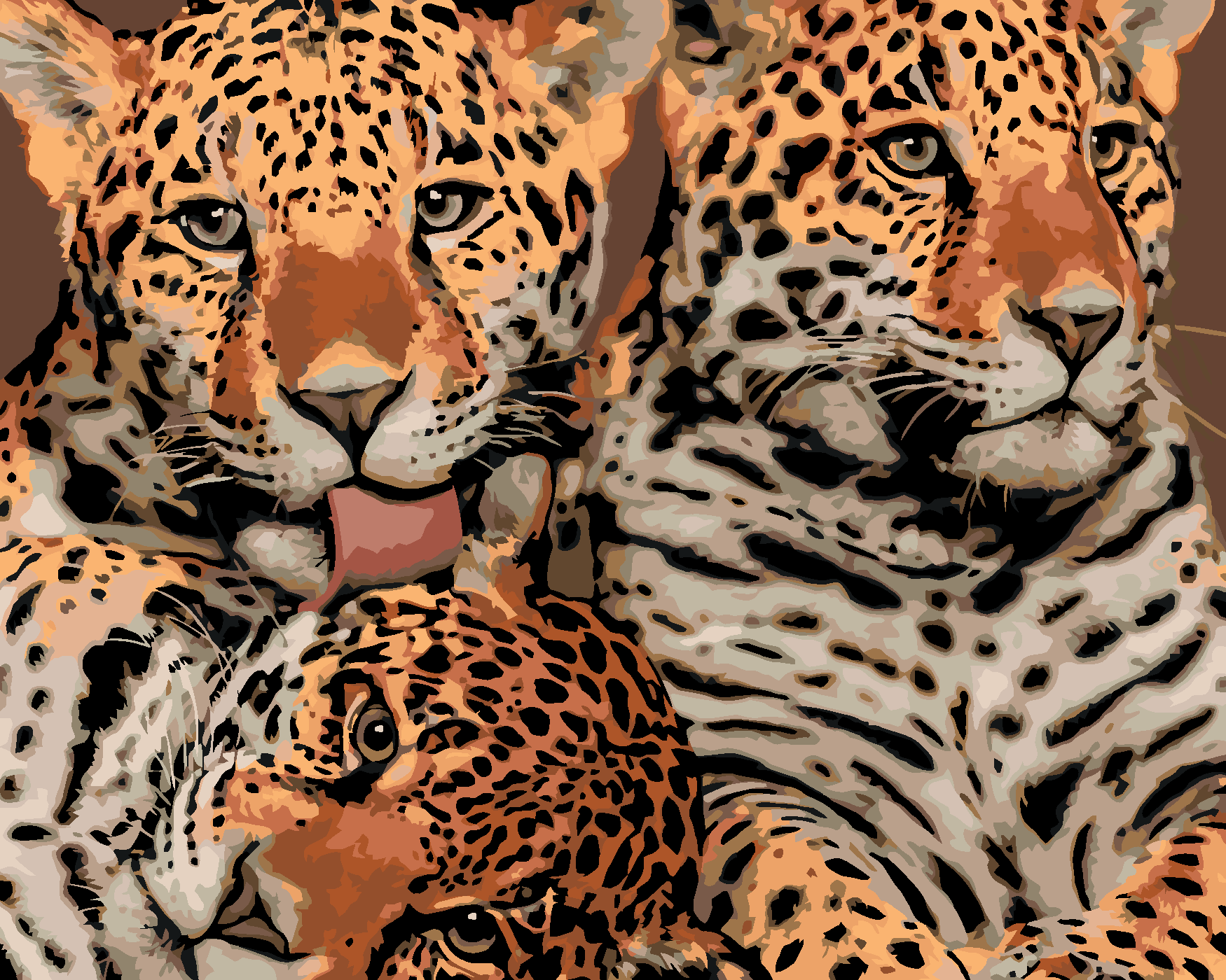 Malen nach Zahlen - JAGUARMUTTER UND ZWEI JUNGTIERE