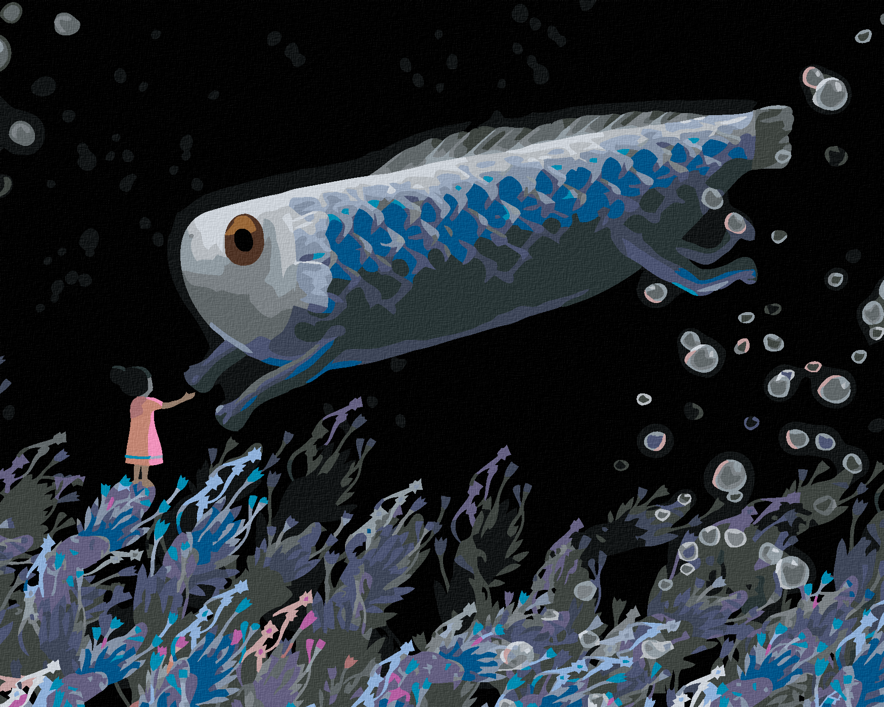 Malen nach Zahlen - KLEINES MÄDCHEN MIT EINEM RIESIGEN FISCH