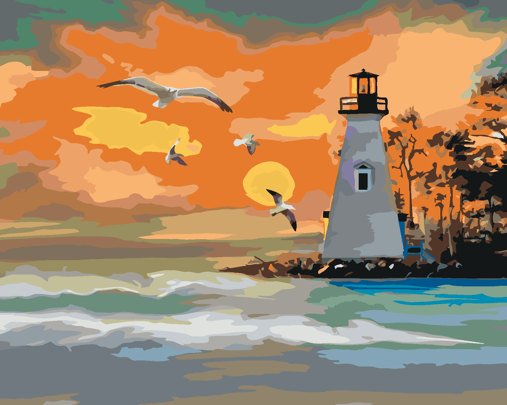 Malen nach Zahlen - SONNENUNTERGANG UND LEUCHTTURM