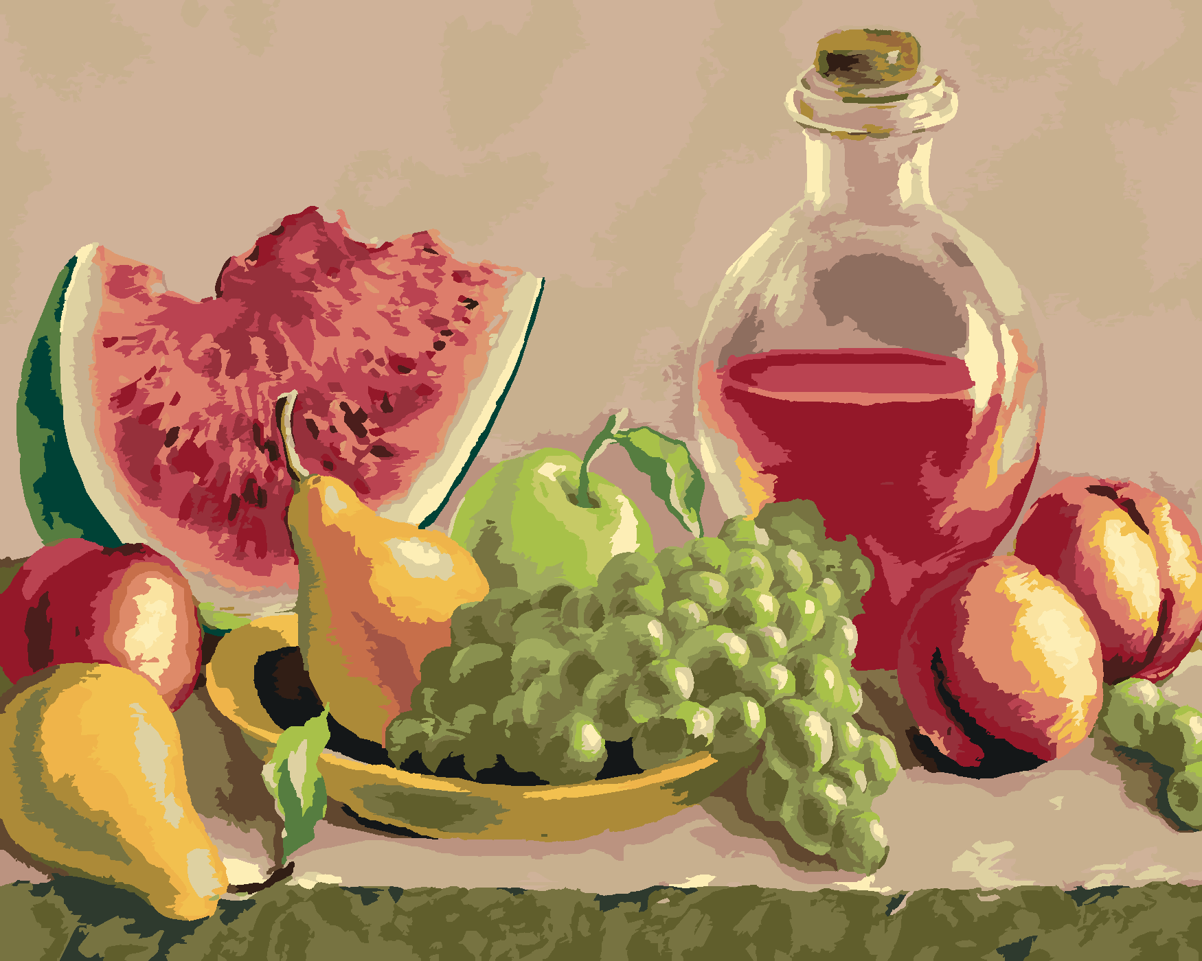 Malen nach Zahlen - STILLLEBEN MIT PFIRSICHEN, TRAUBEN UND MELONE