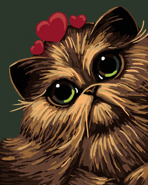 Malen nach Zahlen - KATZE MIT DREI HERZCHEN