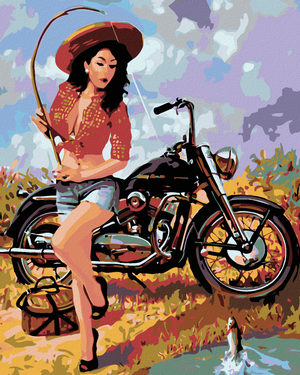 Malen nach Zahlen - FISCHERSFRAU MIT MOTORRAD