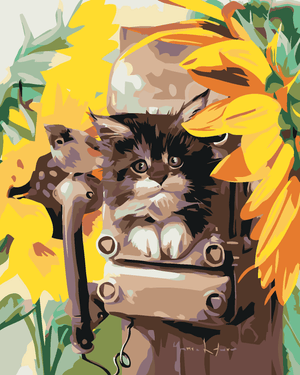 Malen nach Zahlen - KÄTZCHEN IM KÄSTCHEN UND SONNENBLUME