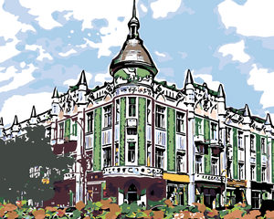 Malen nach Zahlen - GEBÄUDE AM RAND DER STRAßE