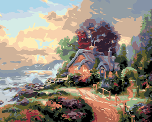 Malen nach Zahlen - HÄUSCHEN IM GARTEN AN DER KÜSTE