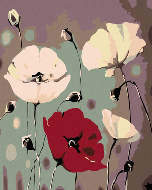 Malen nach Zahlen - WEIßER SCHLAFMOHN MIT EINEM ROTEN