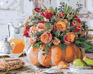 Malen nach Zahlen - ROSENSTRAUß IM KÜRBIS