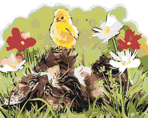Malen nach Zahlen - KÄTZCHEN UND HÜHNCHEN