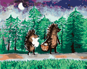 Malen nach Zahlen - IGEL MIT EINEM FREUND SAMMELN PILZE