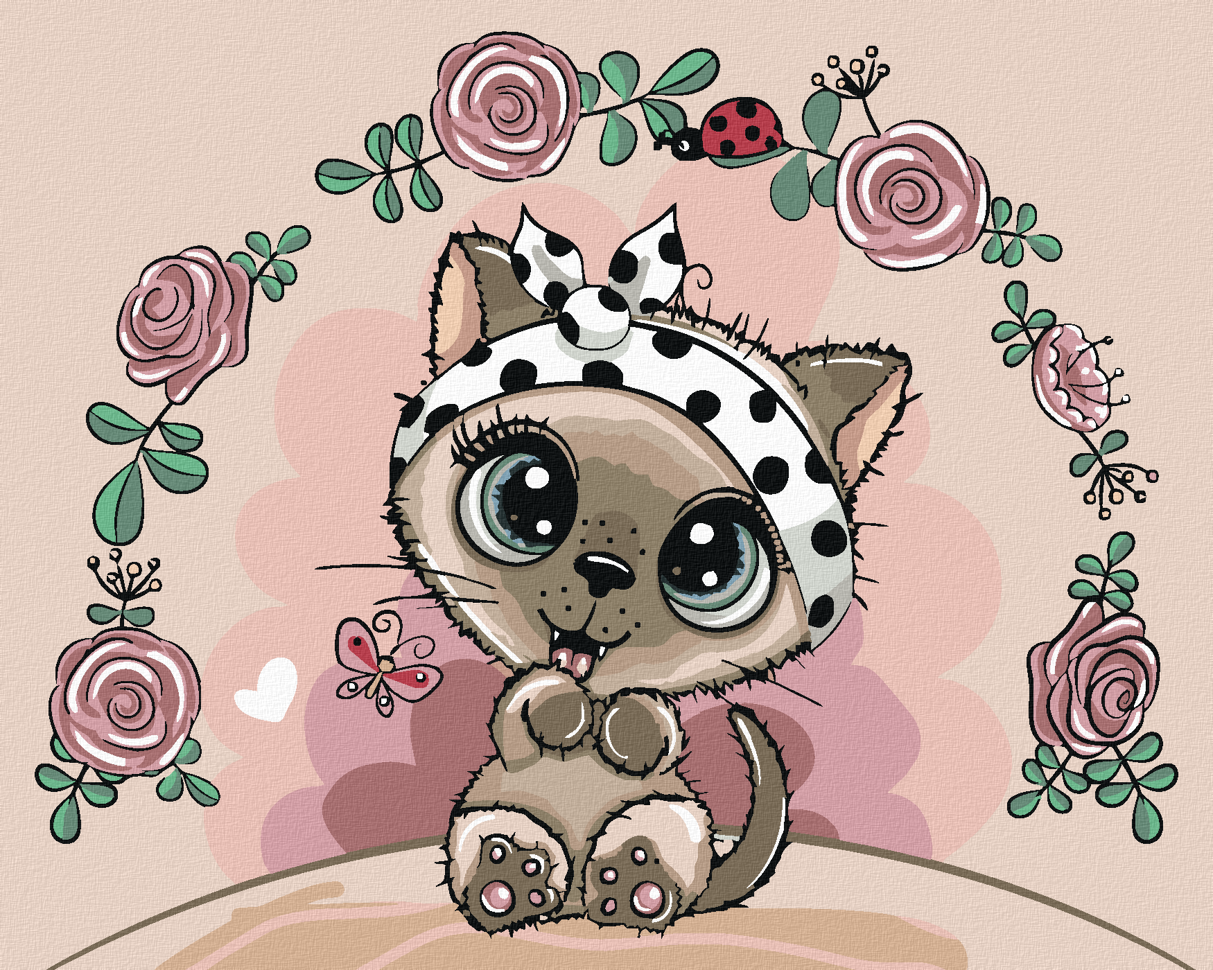 Malen nach Zahlen - KLEINE KATZE MIT BLUMEN