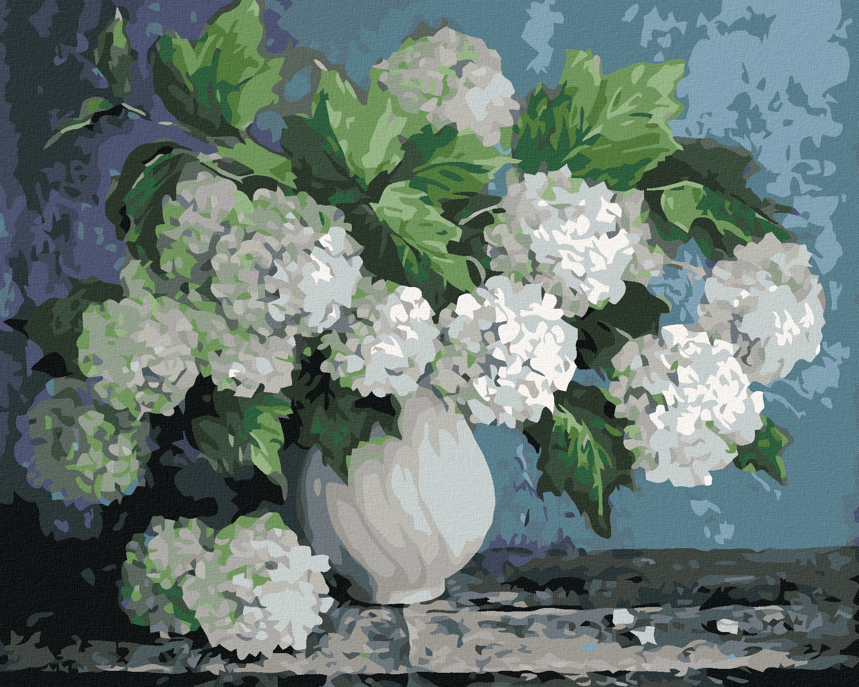 Malen nach Zahlen - HORTENSIEN IN EINER WEISSEN VASE