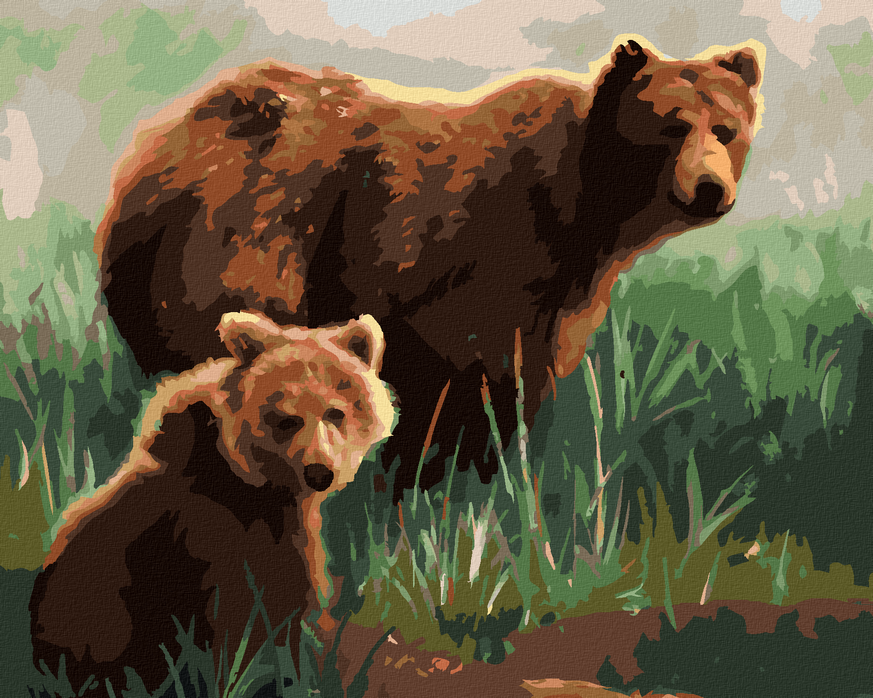 Malen nach Zahlen - BÄR MIT JUNGTIER IM GRAS (D. RUSTY RUST)