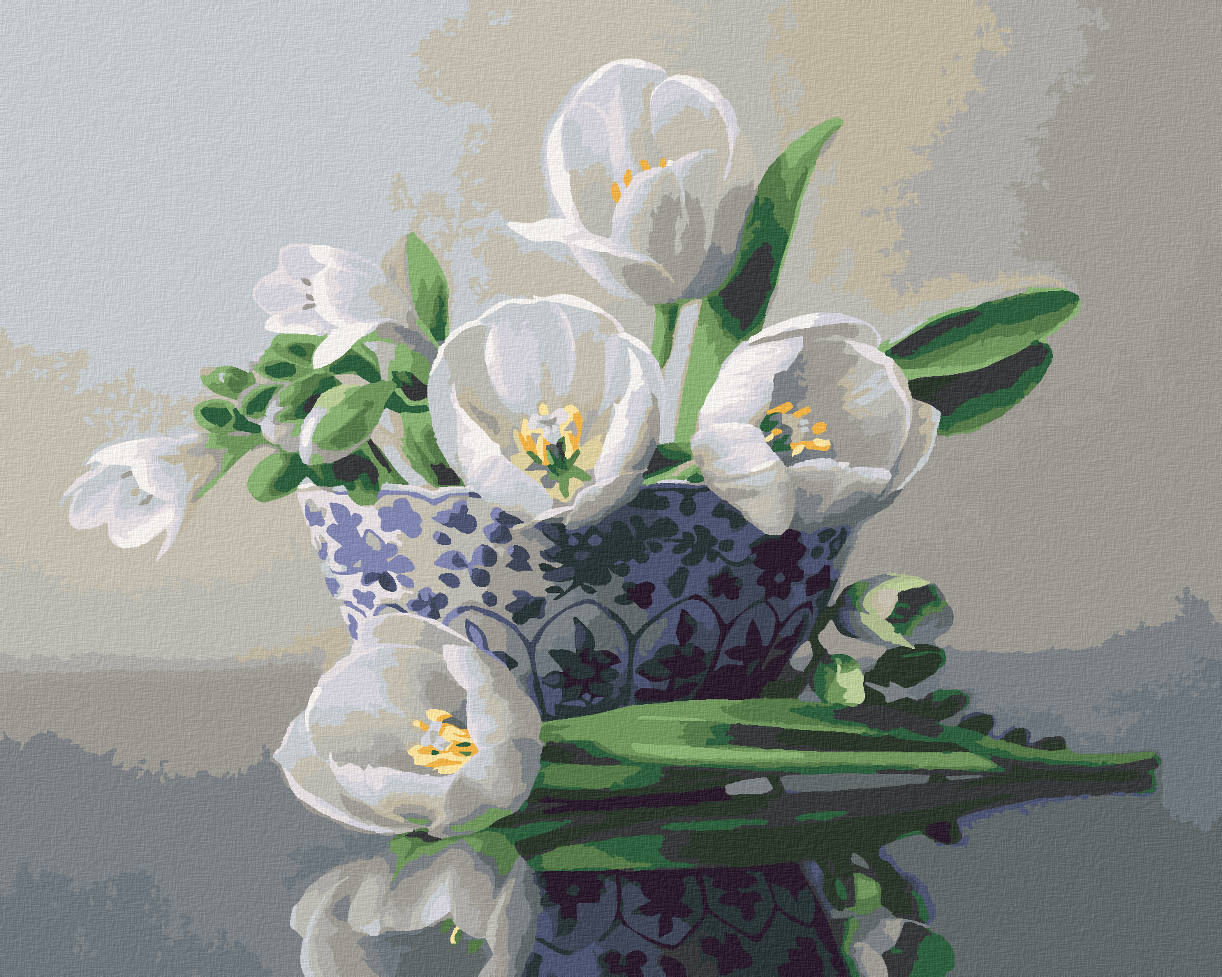 Diamond painting - STILLLEBEN WEISSE TULPEN IN EINER BLAU-WEISSEN SCHALE (PIETER WAGEMANS)