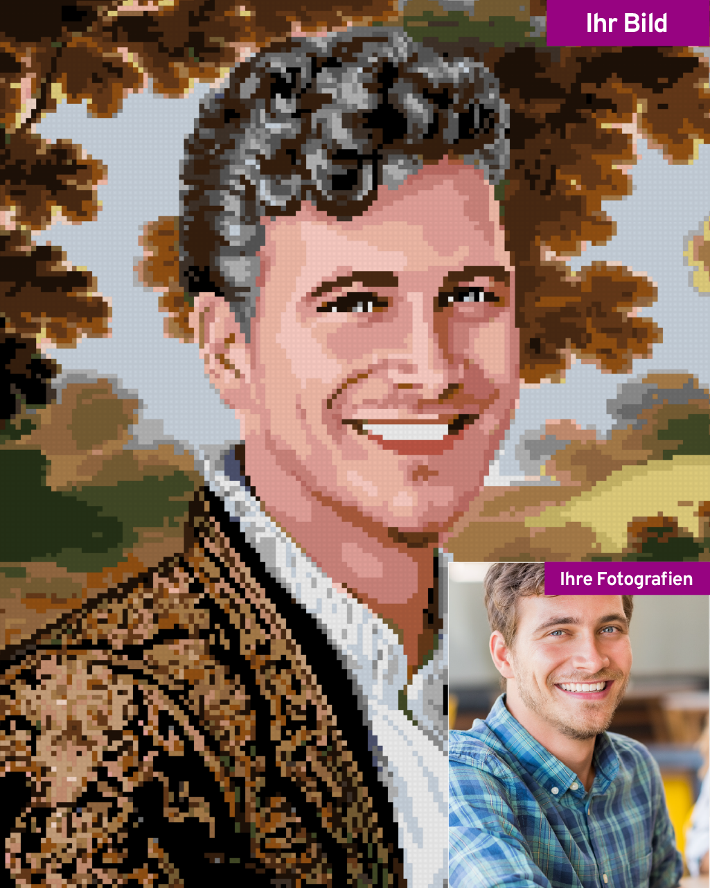 Wir stellen unser neues Produkt vor: Kunststil Edelmann. Schicken Sie uns Ihr Foto und wir bearbeiten es im adeligen Stil, den wir dann in ein Diamantenbild übertragen. Auf diese Weise erhalten Sie ein einzigartiges Bild, das Sie zu Hause selbst gestalten und mit viel Spaß ausmalen können.