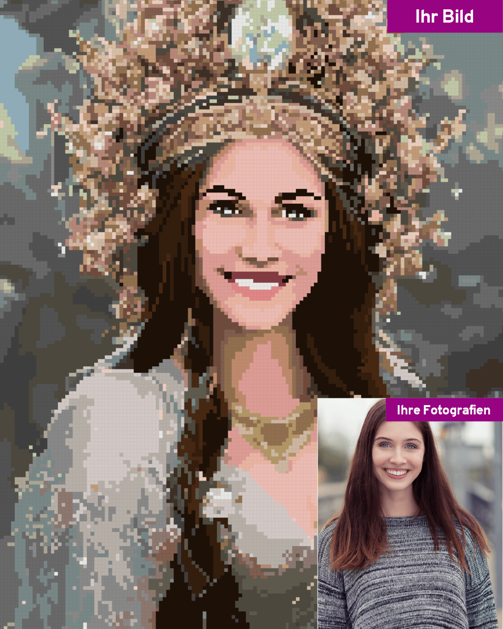 Wir stellen unser neues Produkt vor: Kunststil Magisches Porträt. Schicken Sie uns Ihr Foto und wir bearbeiten es im magischen Porträt Stil, den wir dann in ein Diamantenbild übertragen. Auf diese Weise erhalten Sie ein einzigartiges Bild, das Sie zu Hause selbst gestalten und mit viel Spaß ausmalen können.
