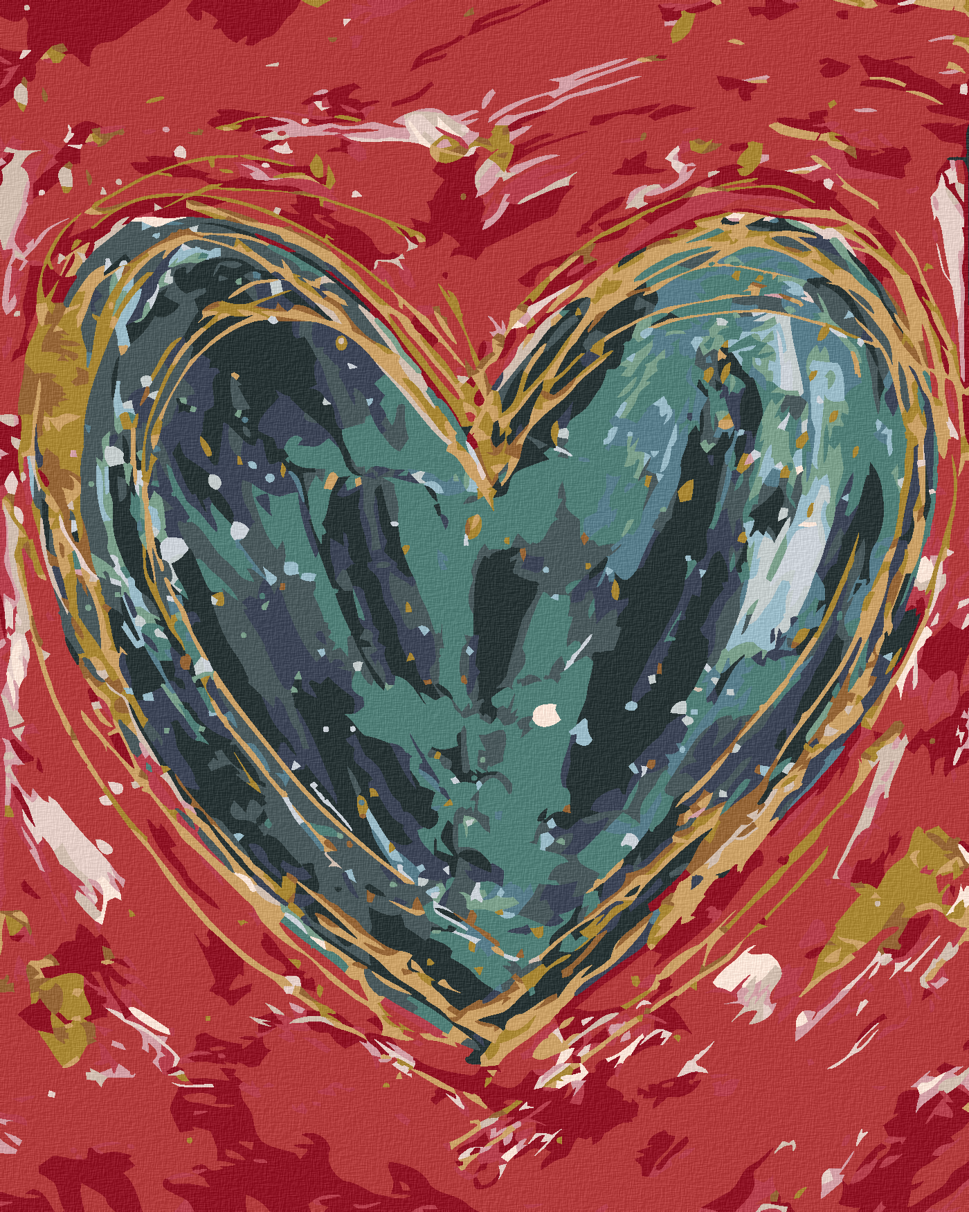 Diamond painting - GRÜNES HERZ AUF ROTEM HINTERGRUND II (HALEY BUSH)