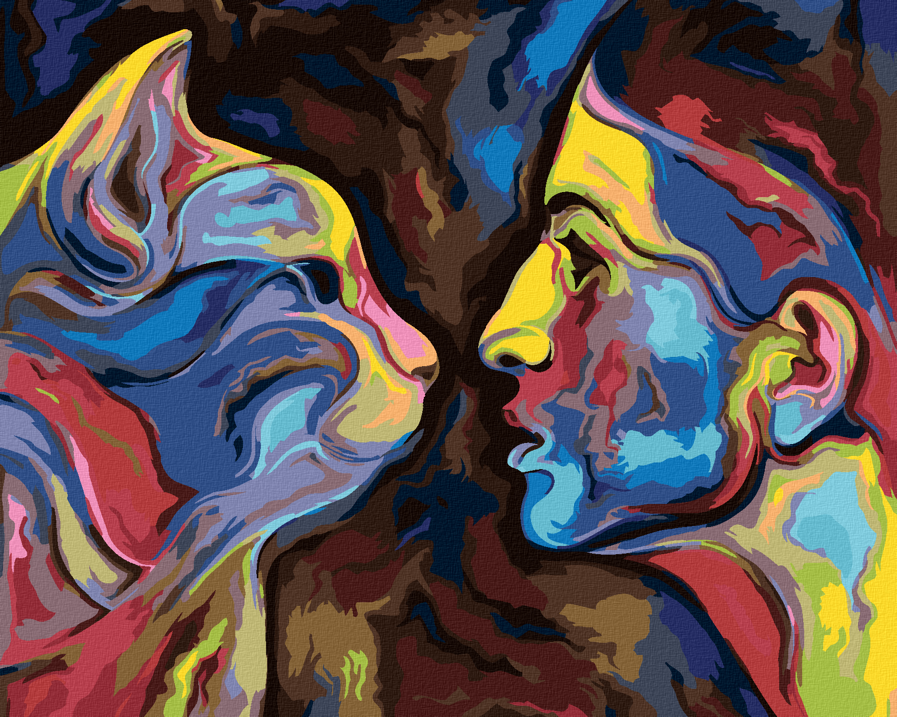 Malen nach Zahlen - ABSTRAKTION EINER FRAU UND KATZE