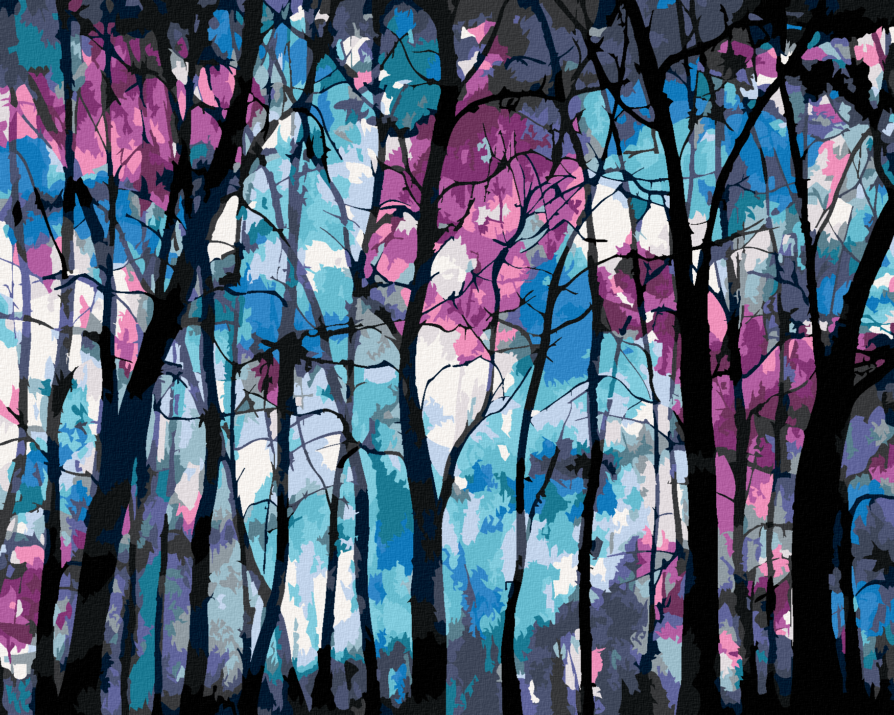 Malen nach Zahlen - DUNKLER WALD MIT BLAU-VIOLETTEM HIMMEL