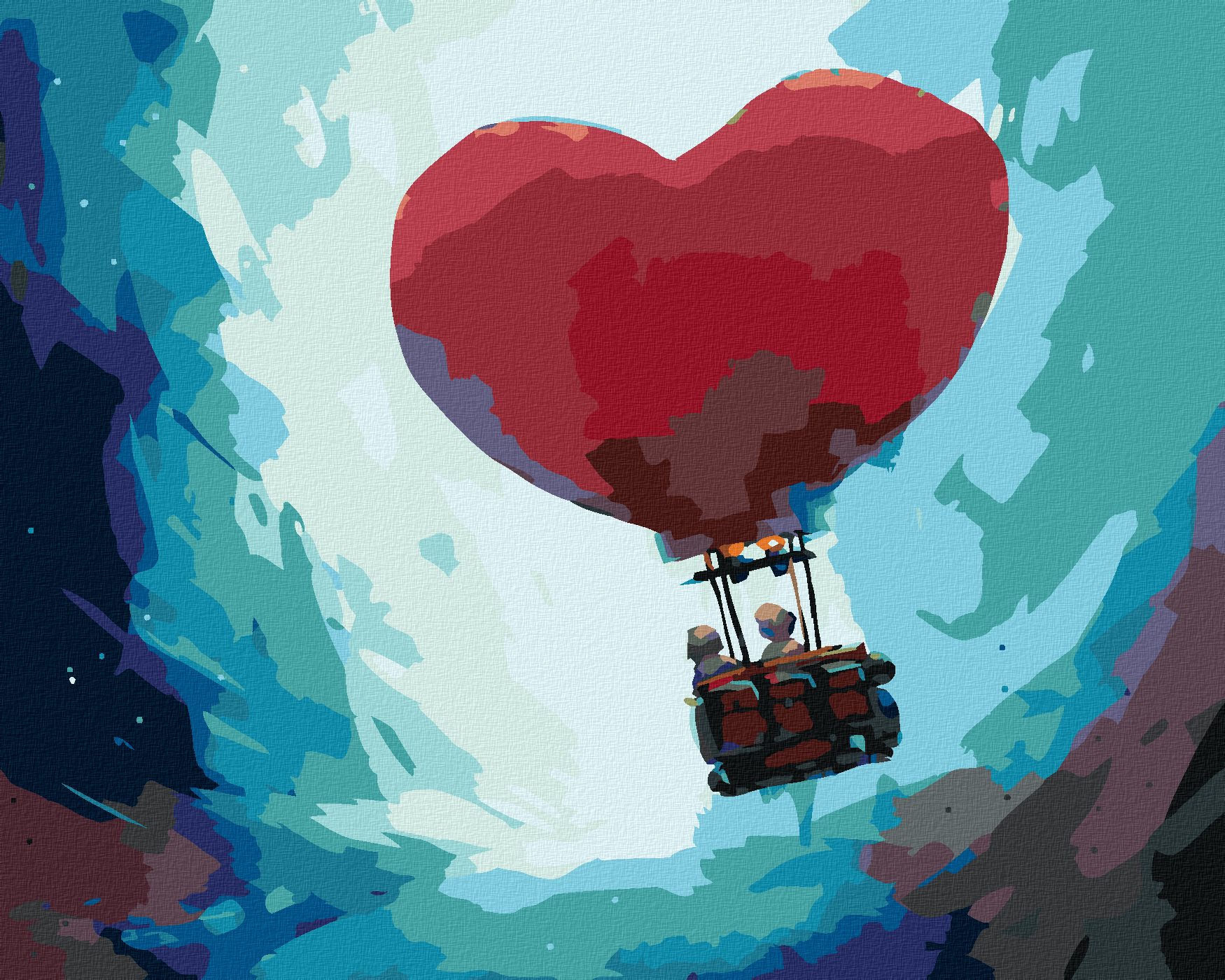 Malen nach Zahlen - EIN PAAR, DAS IN EINEM HERZFÖRMIGEN BALLON FLIEGT