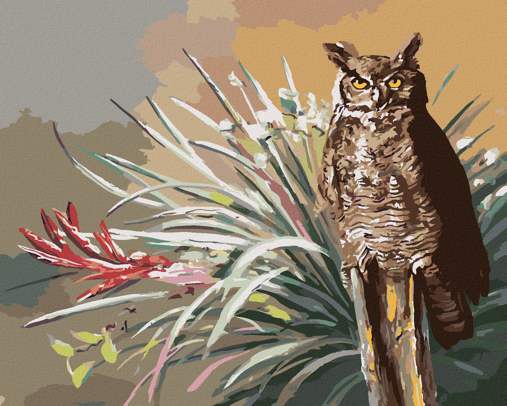 Malen nach Zahlen - EULE UND BLÄTTER (D. RUSTY RUST)