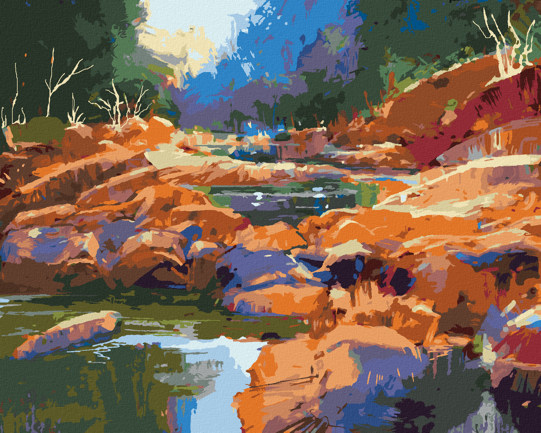 Malen nach Zahlen - FLIESSENDER FLUSS ZWISCHEN STEINEN IM WALD
