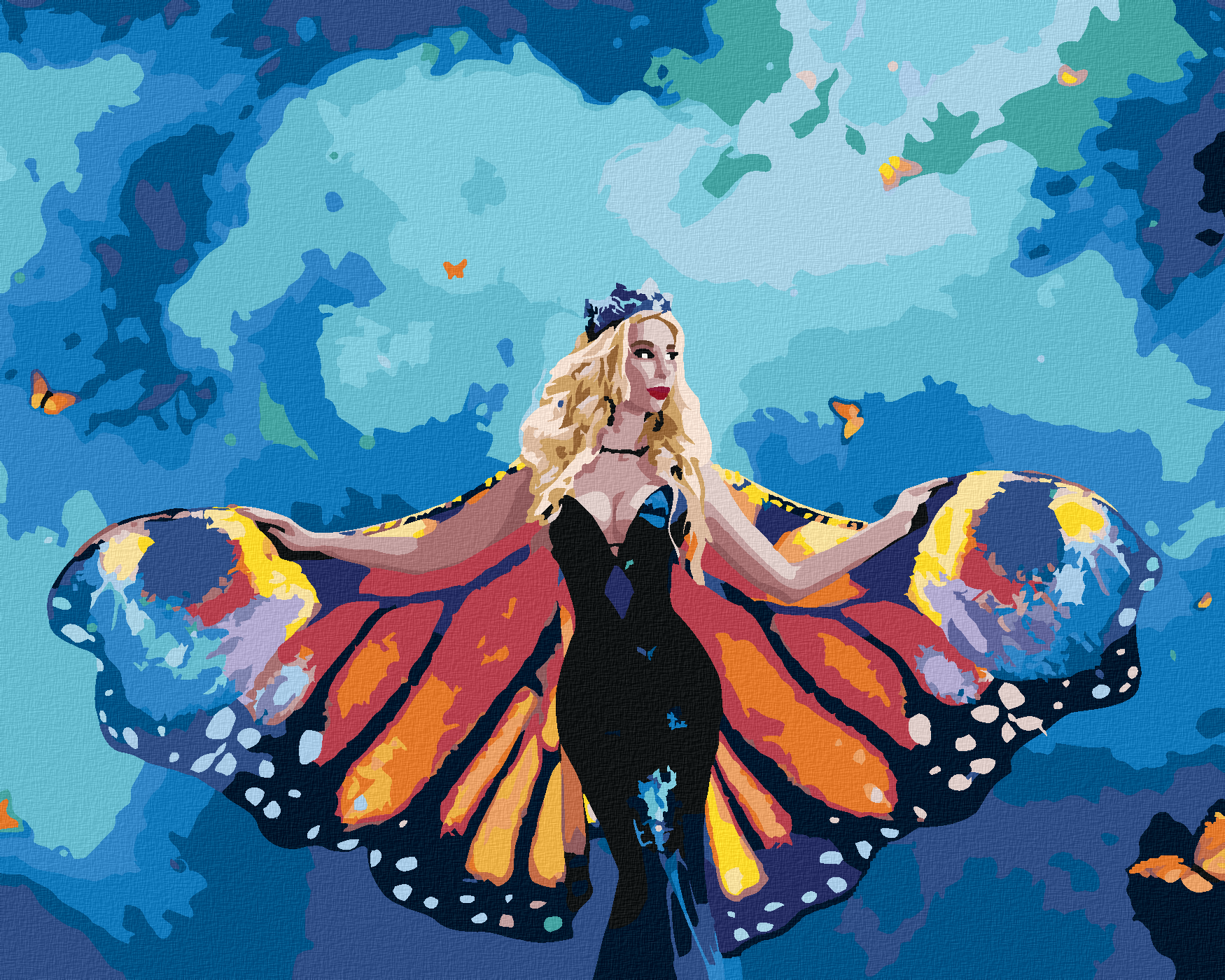 Malen nach Zahlen - FRAU UND RIESIGE SCHMETTERLINGSFLÜGELN