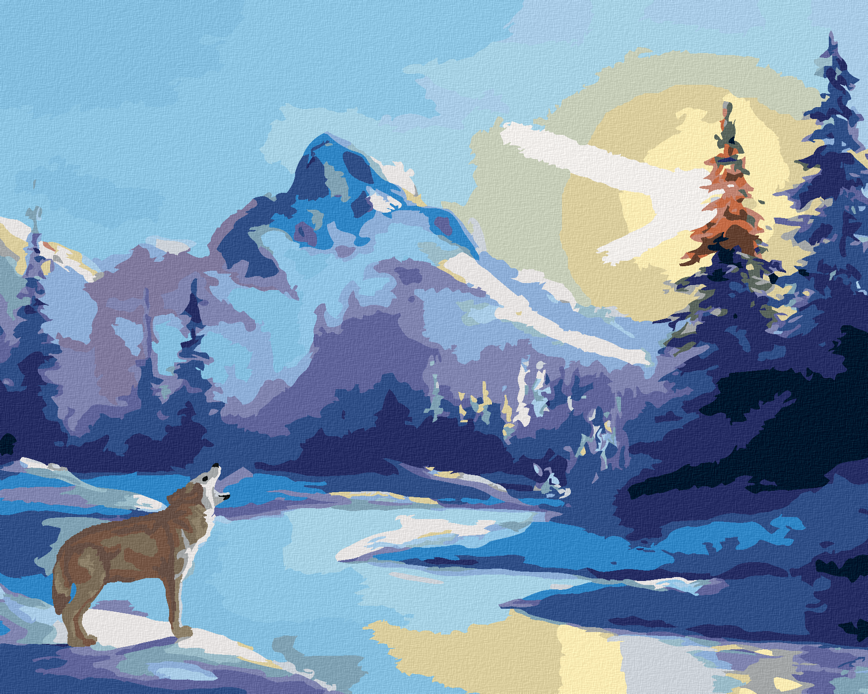 Malen nach Zahlen - HEULENDER WOLF, SONNE UND BERGE (D. RUSTY RUST)