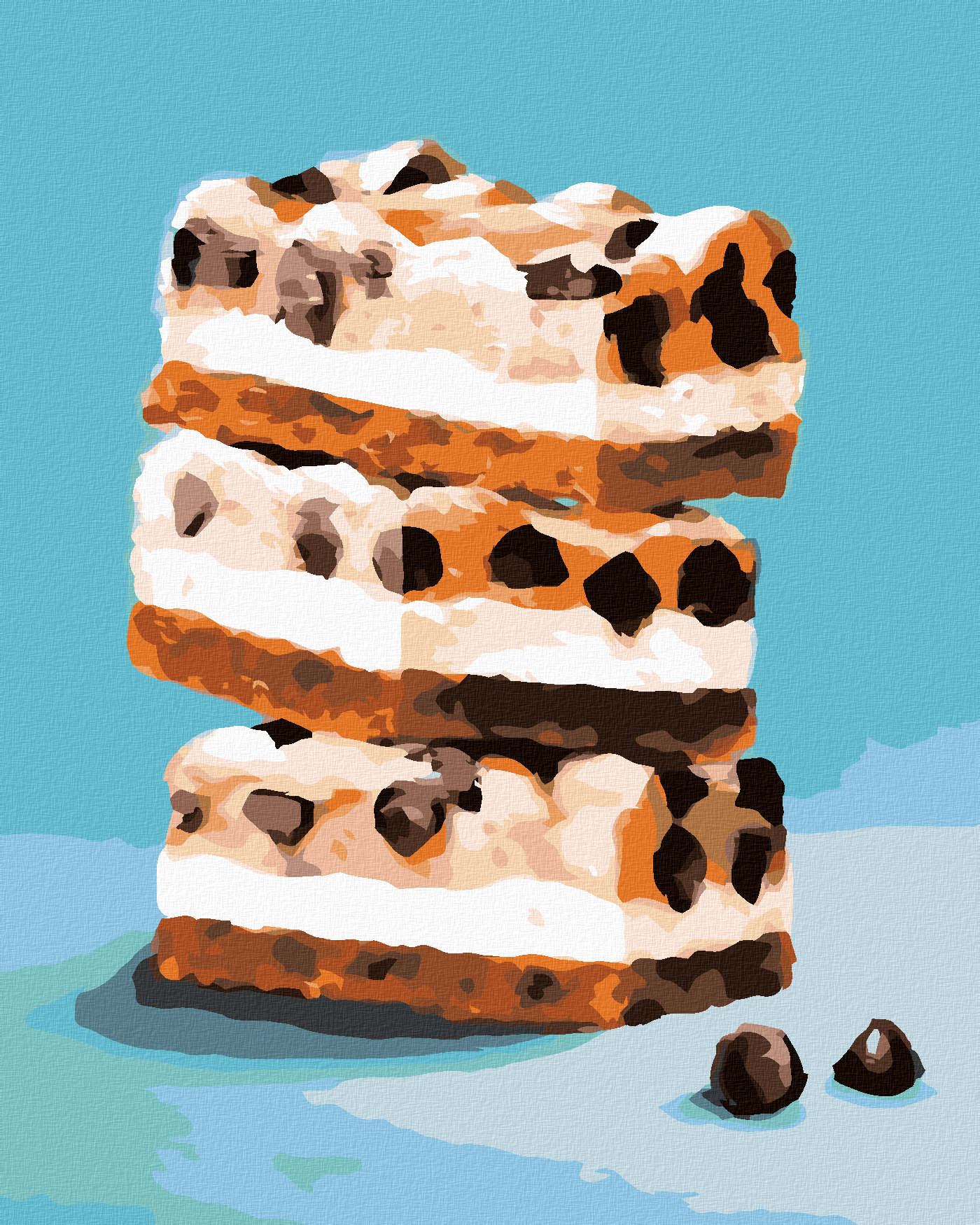 Malen nach Zahlen - KÄSEKUCHENRIEGEL AUF BLAUEM HINTERGRUND (MYROSLAVA VOLOSCHUK)