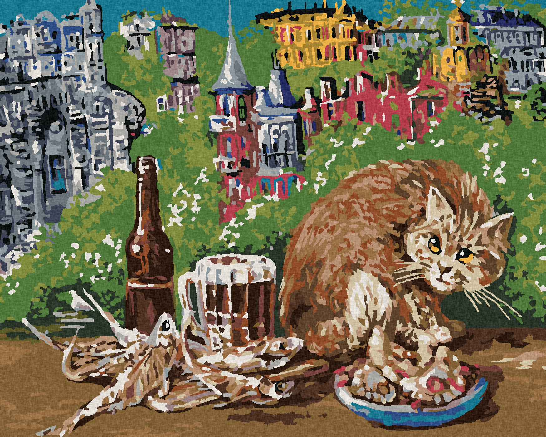 Malen nach Zahlen - KATZE MIT FUTTER AUF DEM TISCH