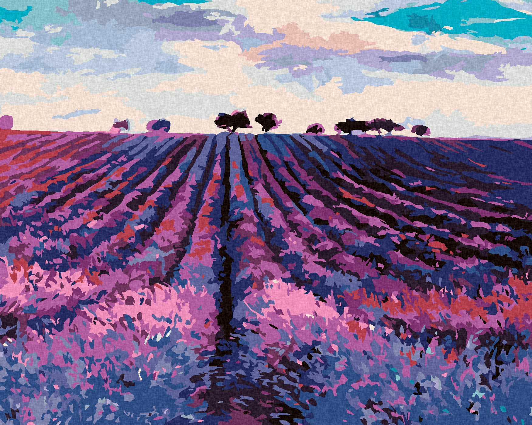 Malen nach Zahlen - LAVENDELFELDER UND BÄUME IN DER FERNE
