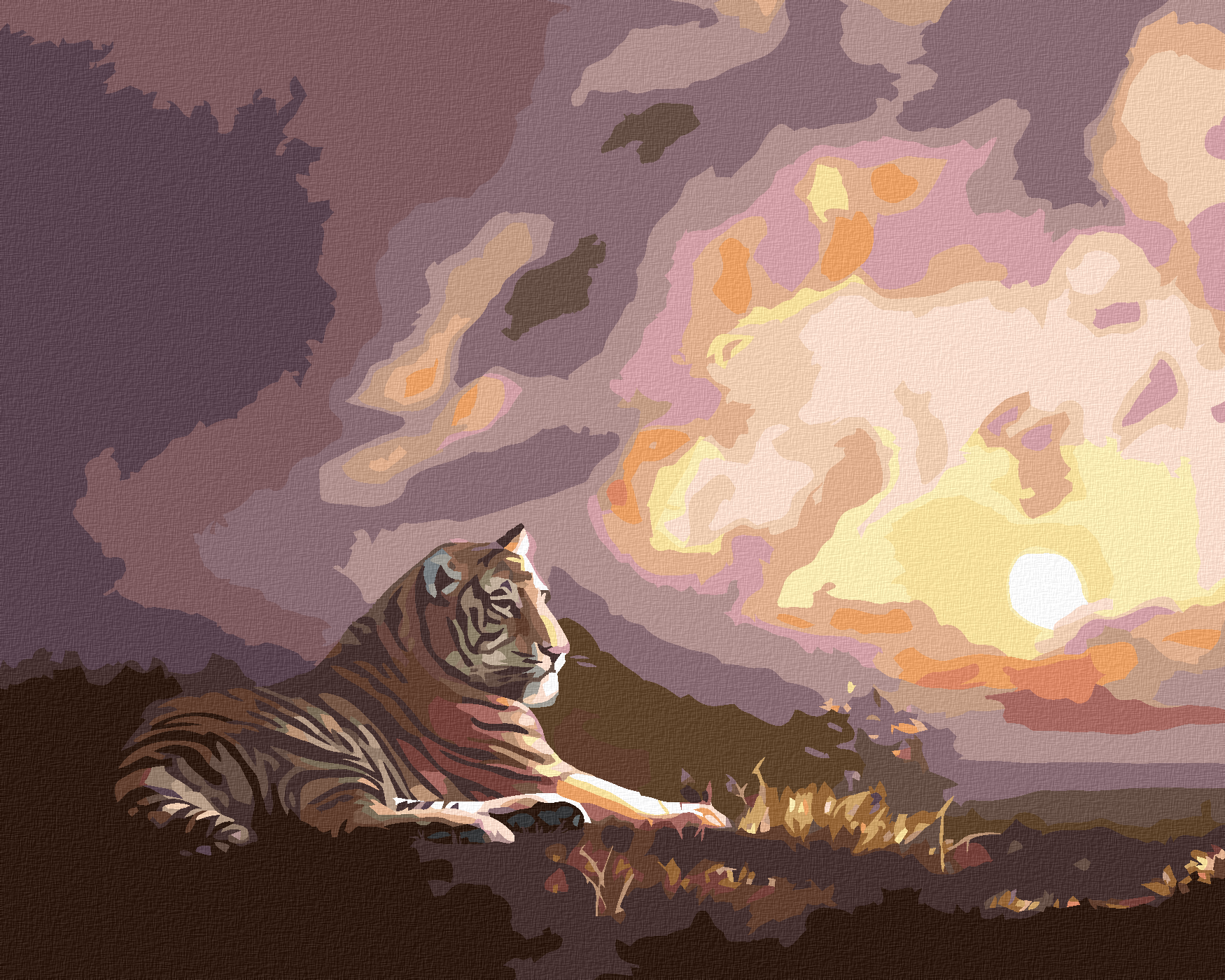 Malen nach Zahlen - LIEGENDER TIGER UND SONNENUNTERGANG (D. RUSTY RUST)