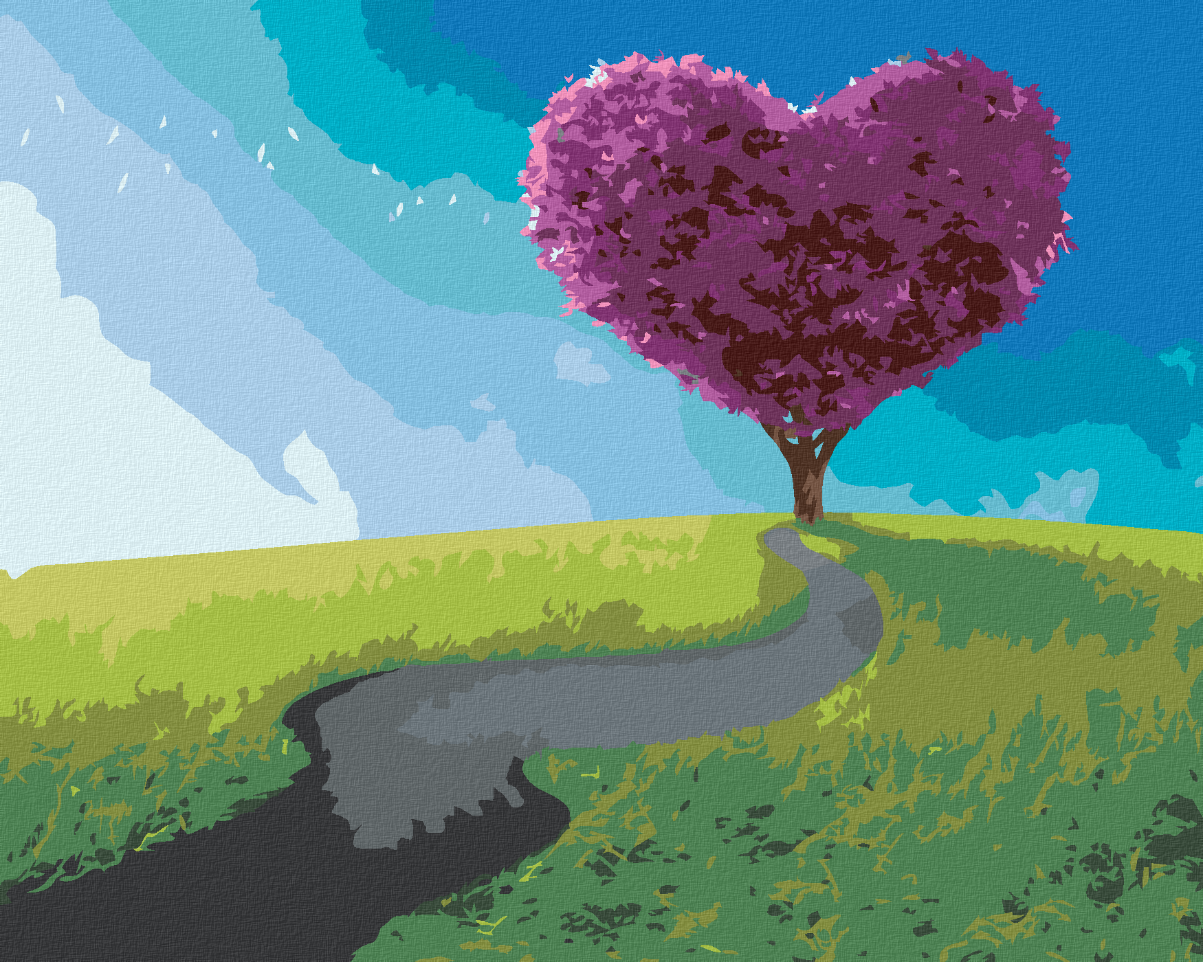 Malen nach Zahlen - LILA BAUM IN FORM EINES HERZENS