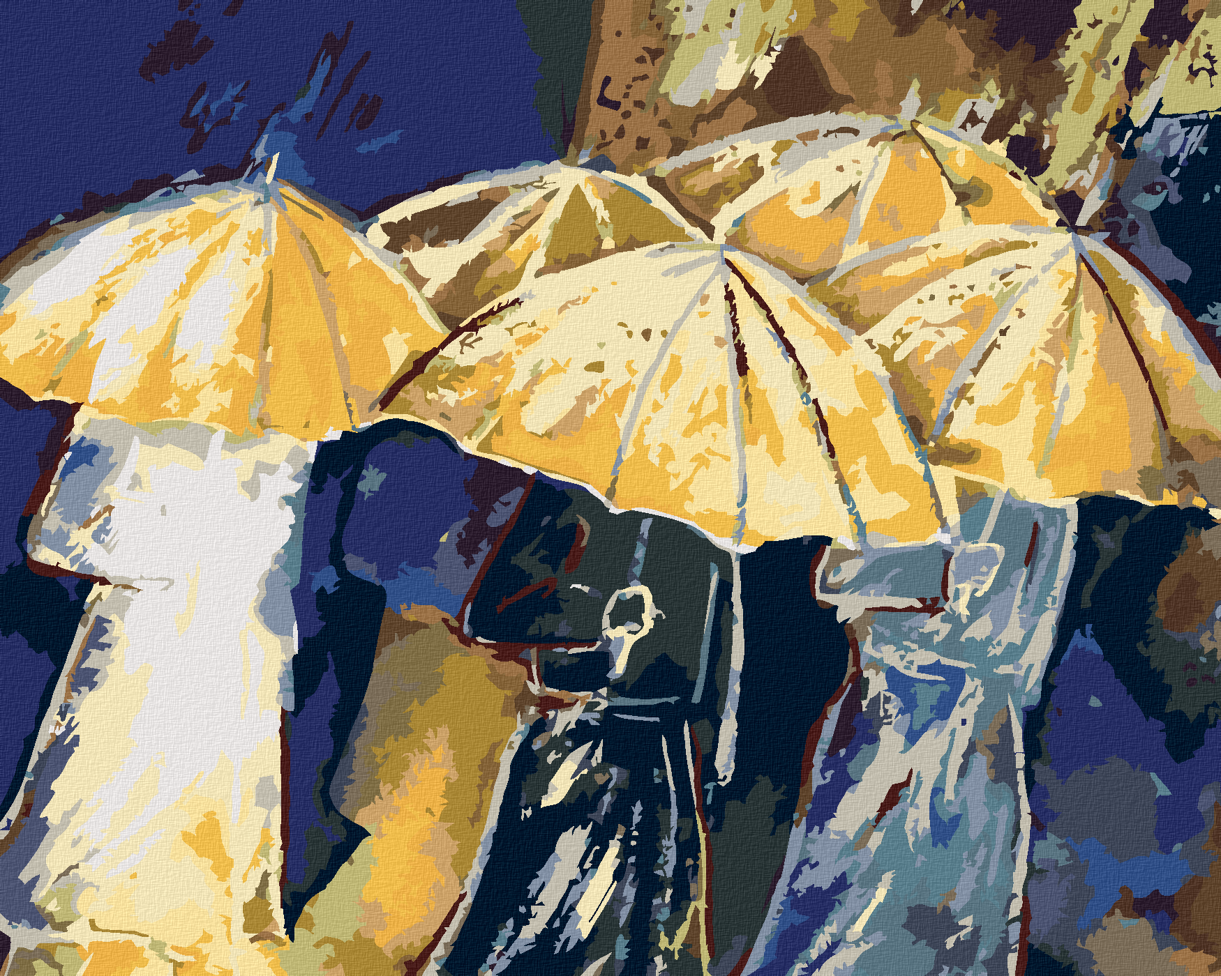 Malen nach Zahlen - MENSCHEN MIT GOLDENEN REGENSCHIRMEN