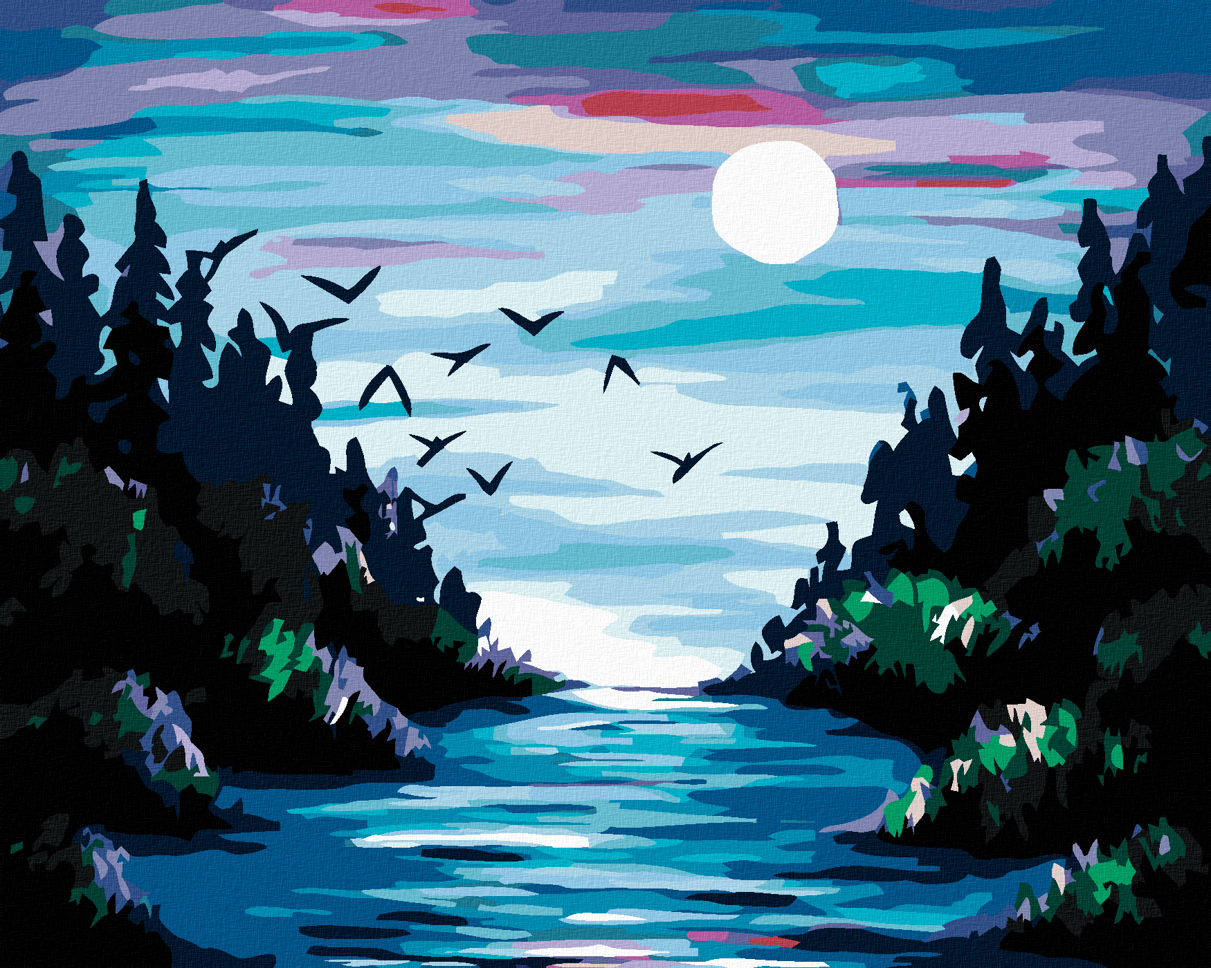 Malen nach Zahlen - MOND ÜBER DEM FLUSS