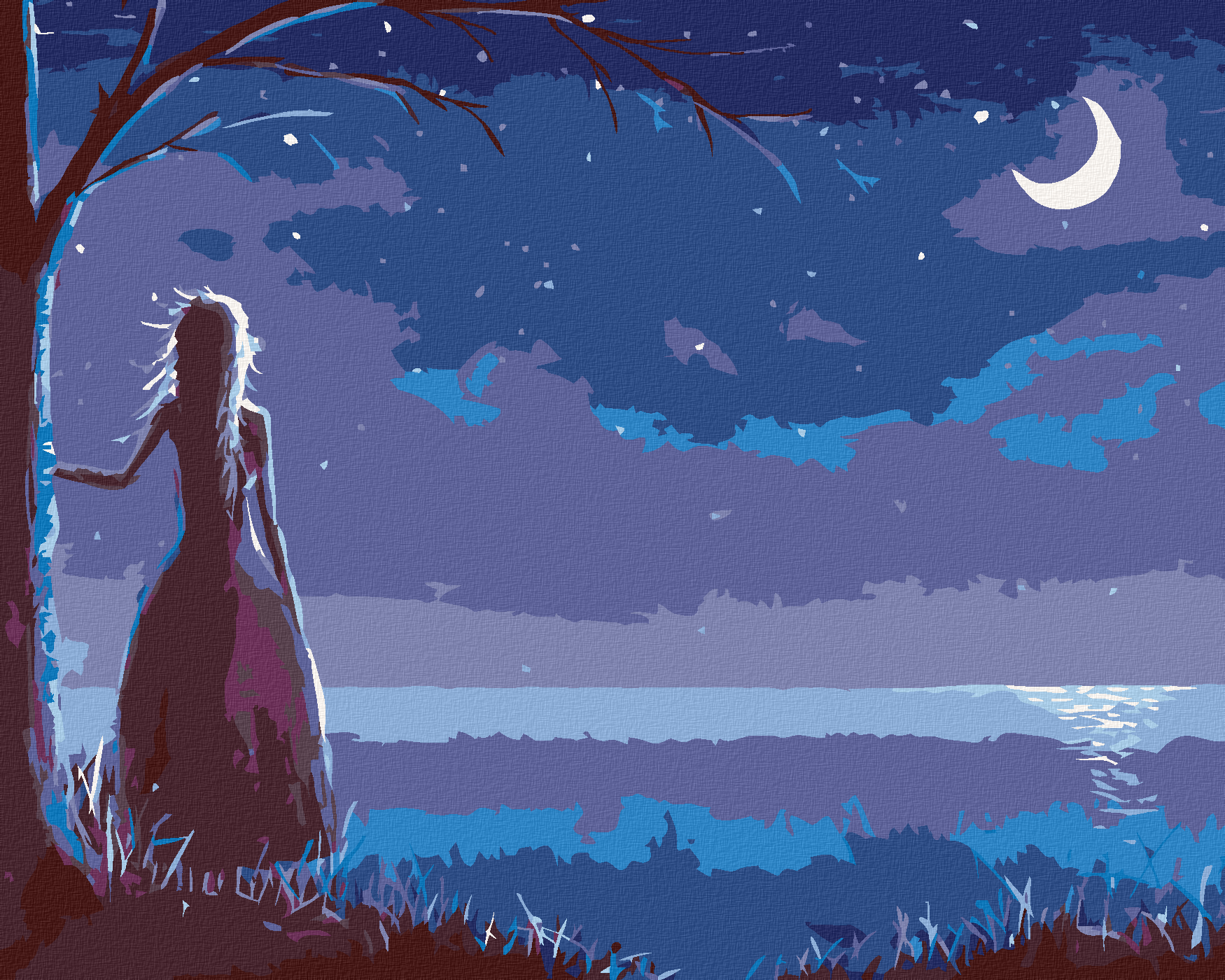 Malen nach Zahlen - PRINZESSIN, DIE DEN MOND BETRACHTET