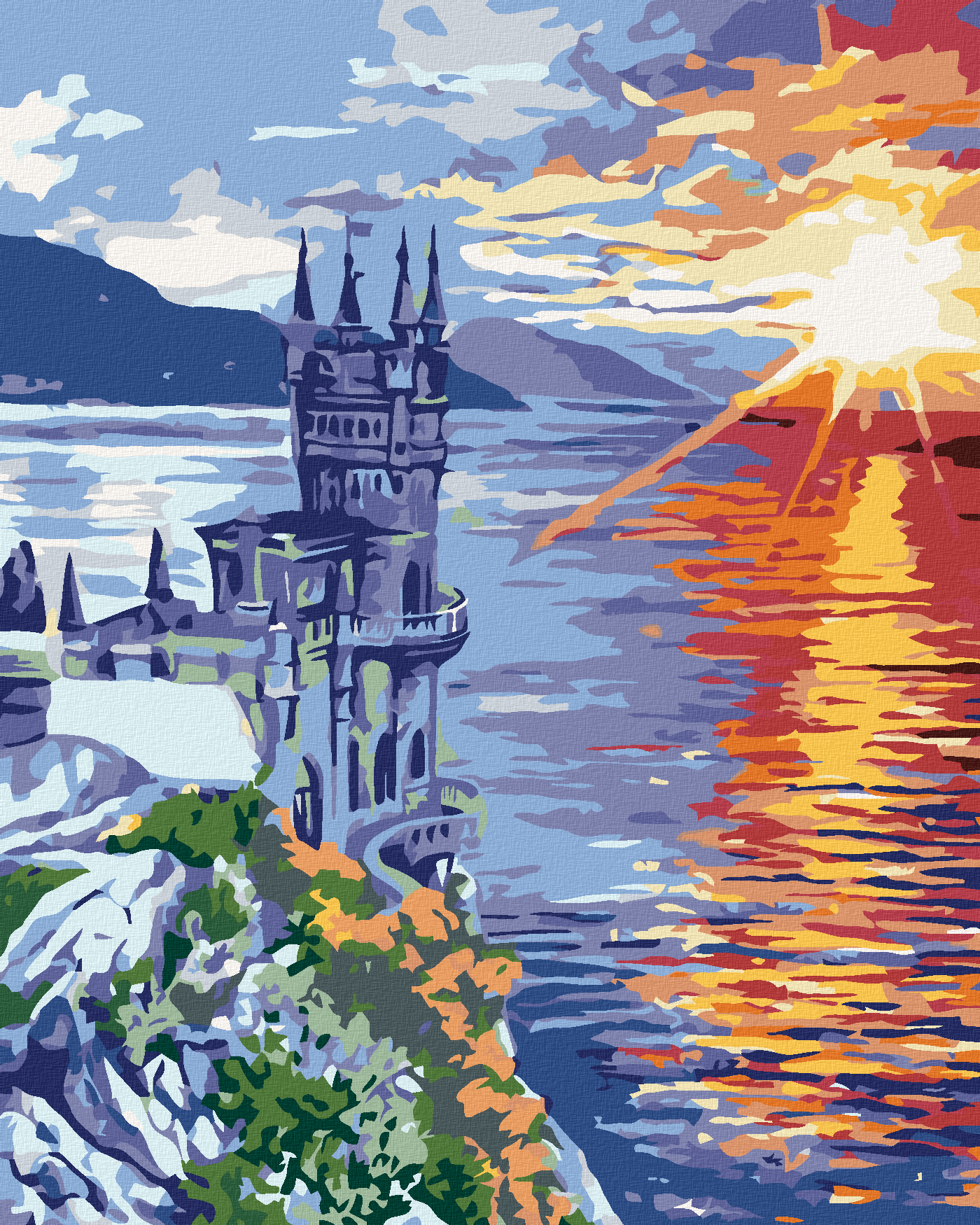 Malen nach Zahlen - SCHLOSS AM FELSEN UND SONNENAUFGANG