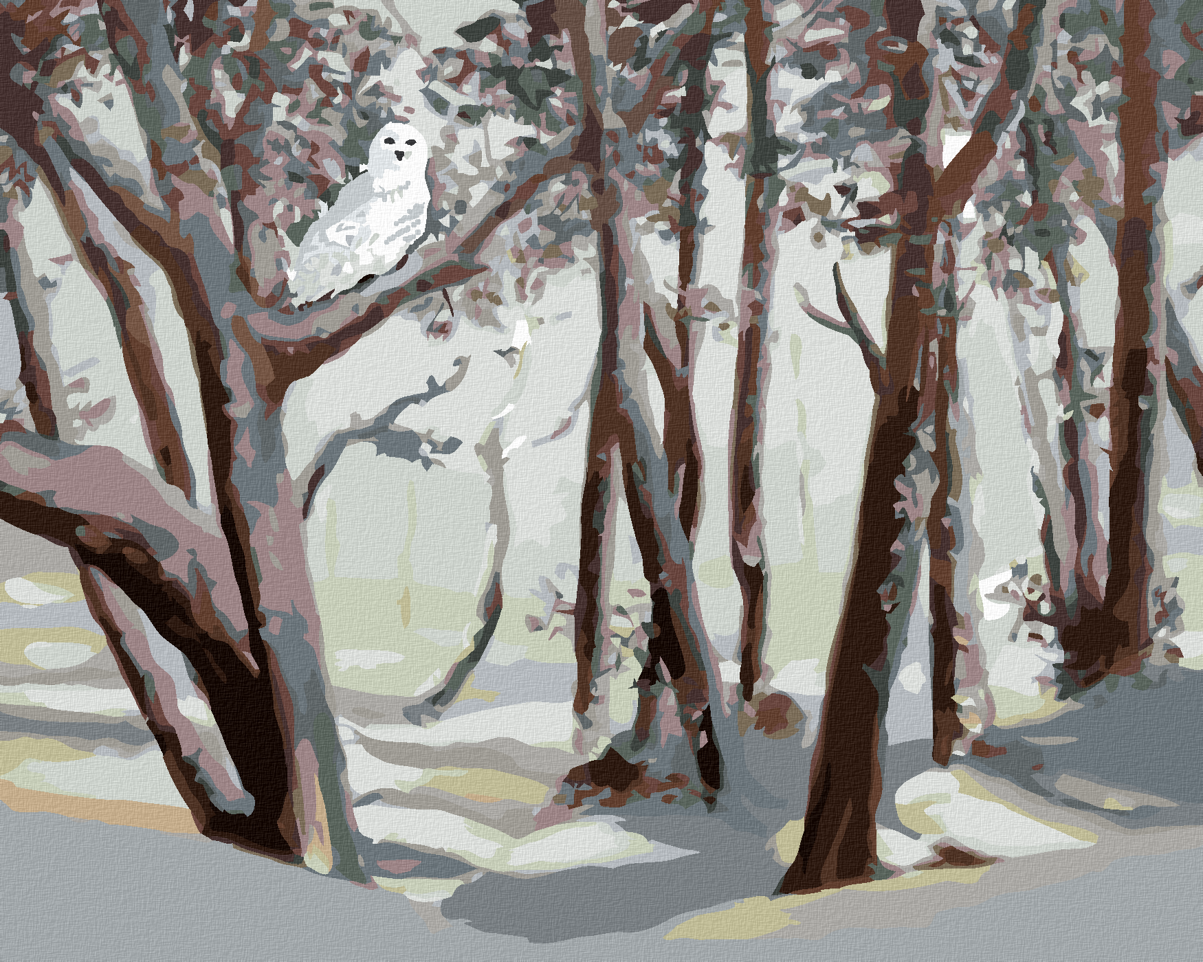 Malen nach Zahlen - SCHNEEEULE UND WALD IM WINTER (D. RUSTY RUST)