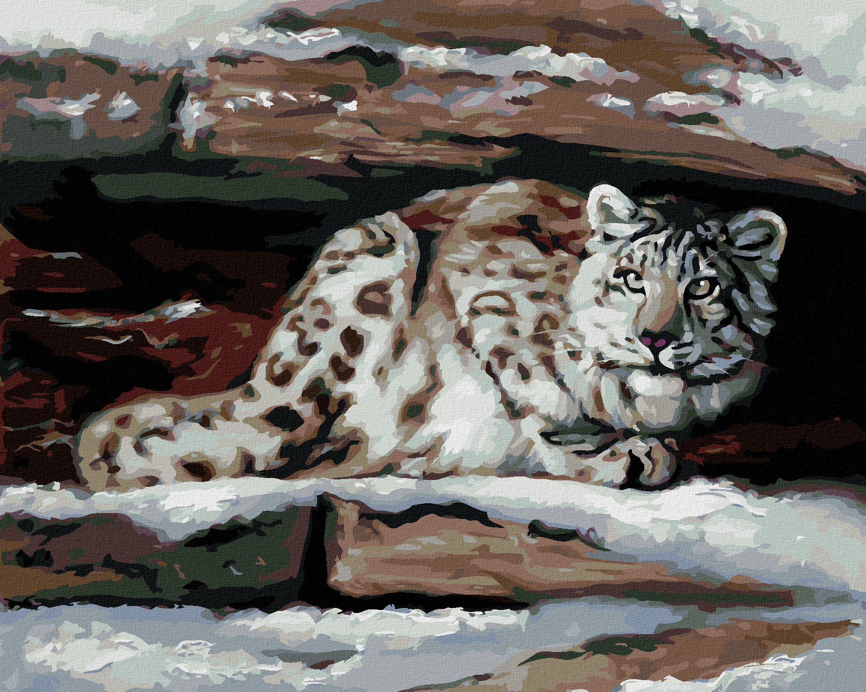 Malen nach Zahlen - SCHNEELEOPARD IM VERSTECK (D. RUSTY RUST)