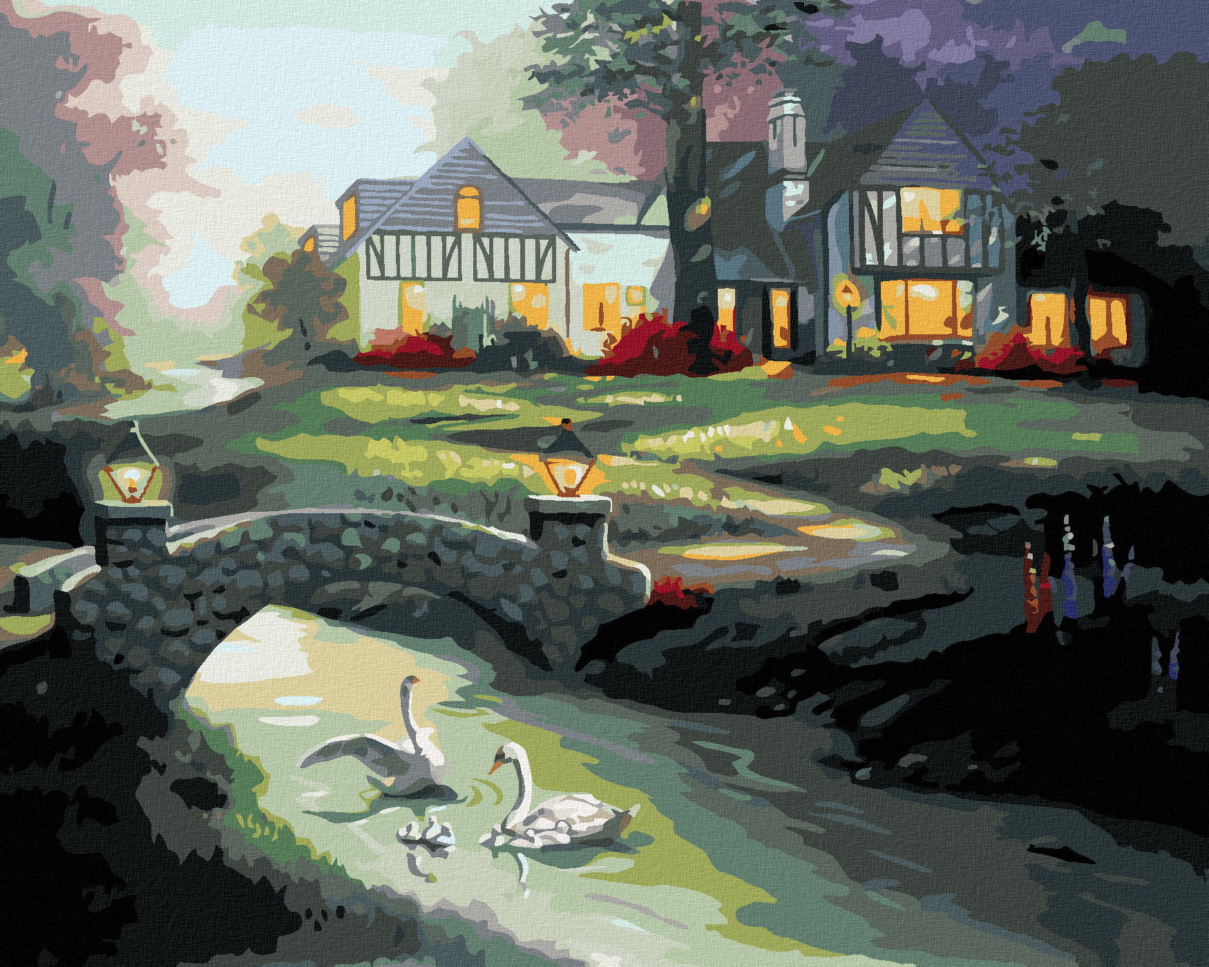 Malen nach Zahlen - SCHWÄNE AUF DEM FLUSS UND HAUS (D. RUSTY RUST)
