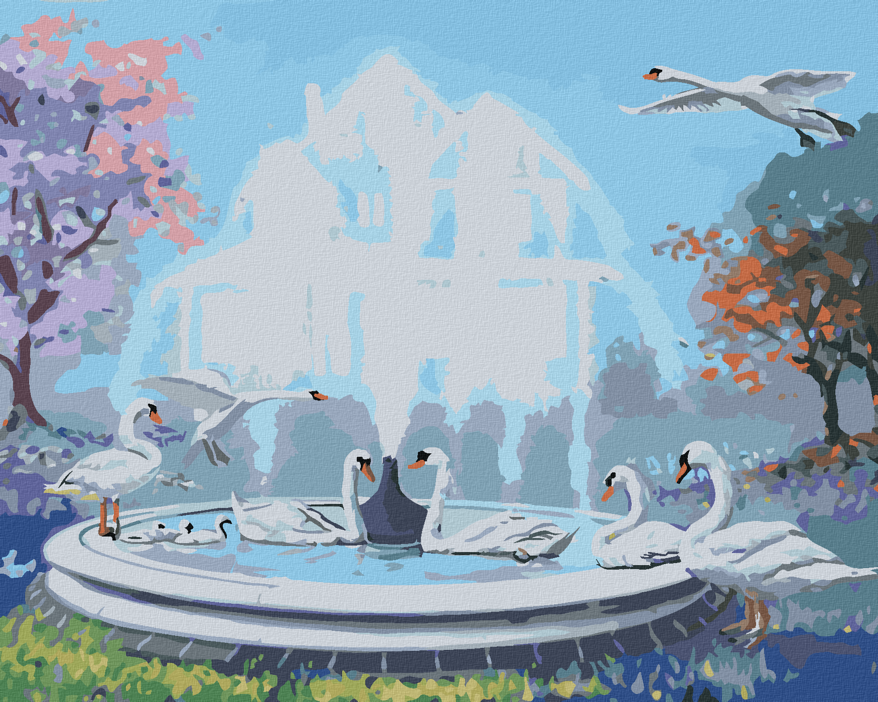 Malen nach Zahlen - SCHWÄNE UND BRUNNEN (D. RUSTY RUST)