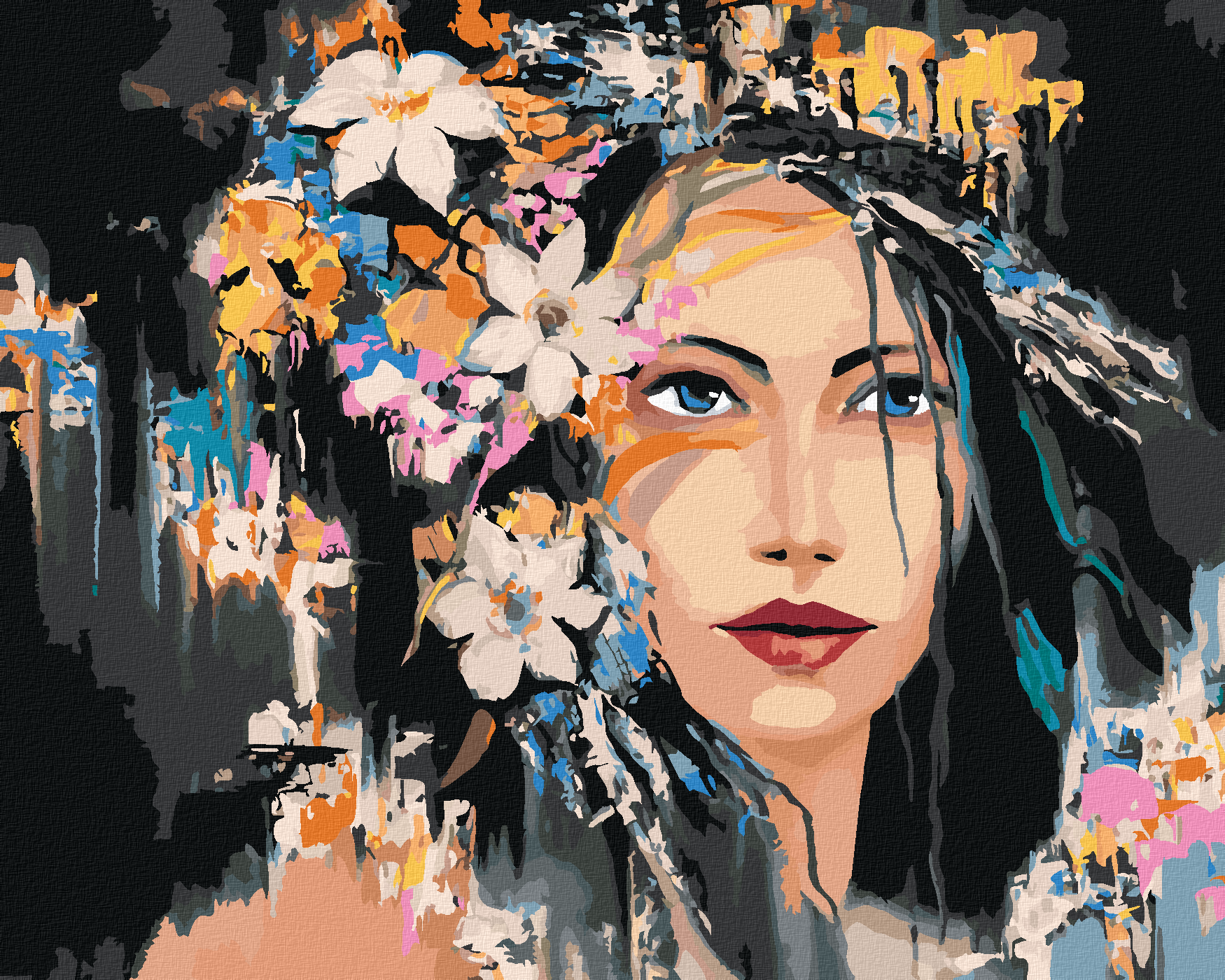 Malen nach Zahlen - SCHWARZHAARIGE FRAU MIT BLUMEN