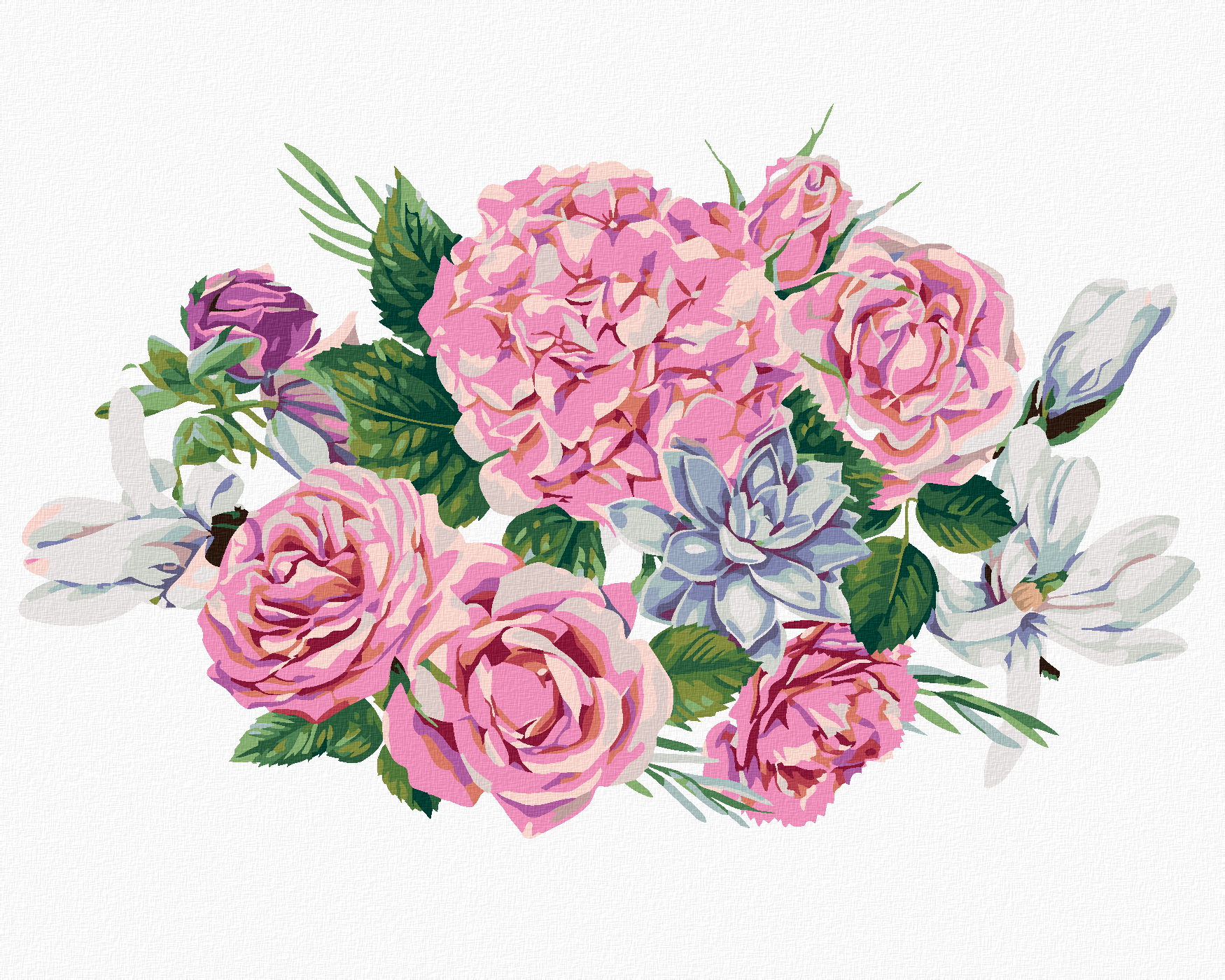 Malen nach Zahlen - STRAUSS AUS MAGNOLIEN, HORTENSIEN UND NELKEN