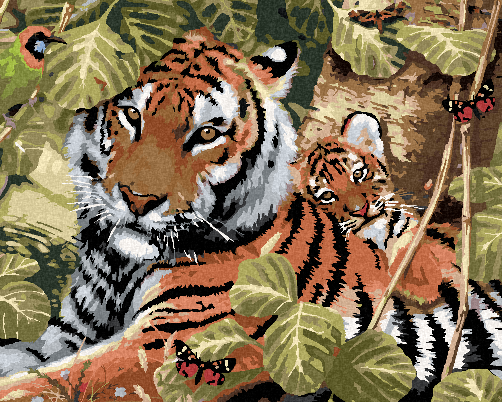 Malen nach Zahlen - TIGER UND JUNGTIER ZWISCHEN BLÄTTERN (HOWARD ROBINSON)