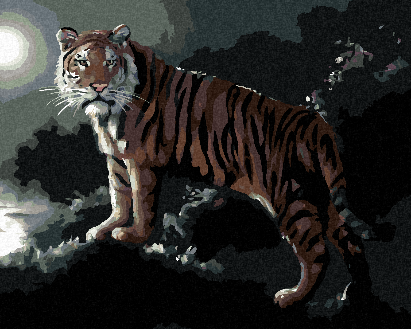 Malen nach Zahlen - TIGER UND VOLLMOND (D. RUSTY RUST)