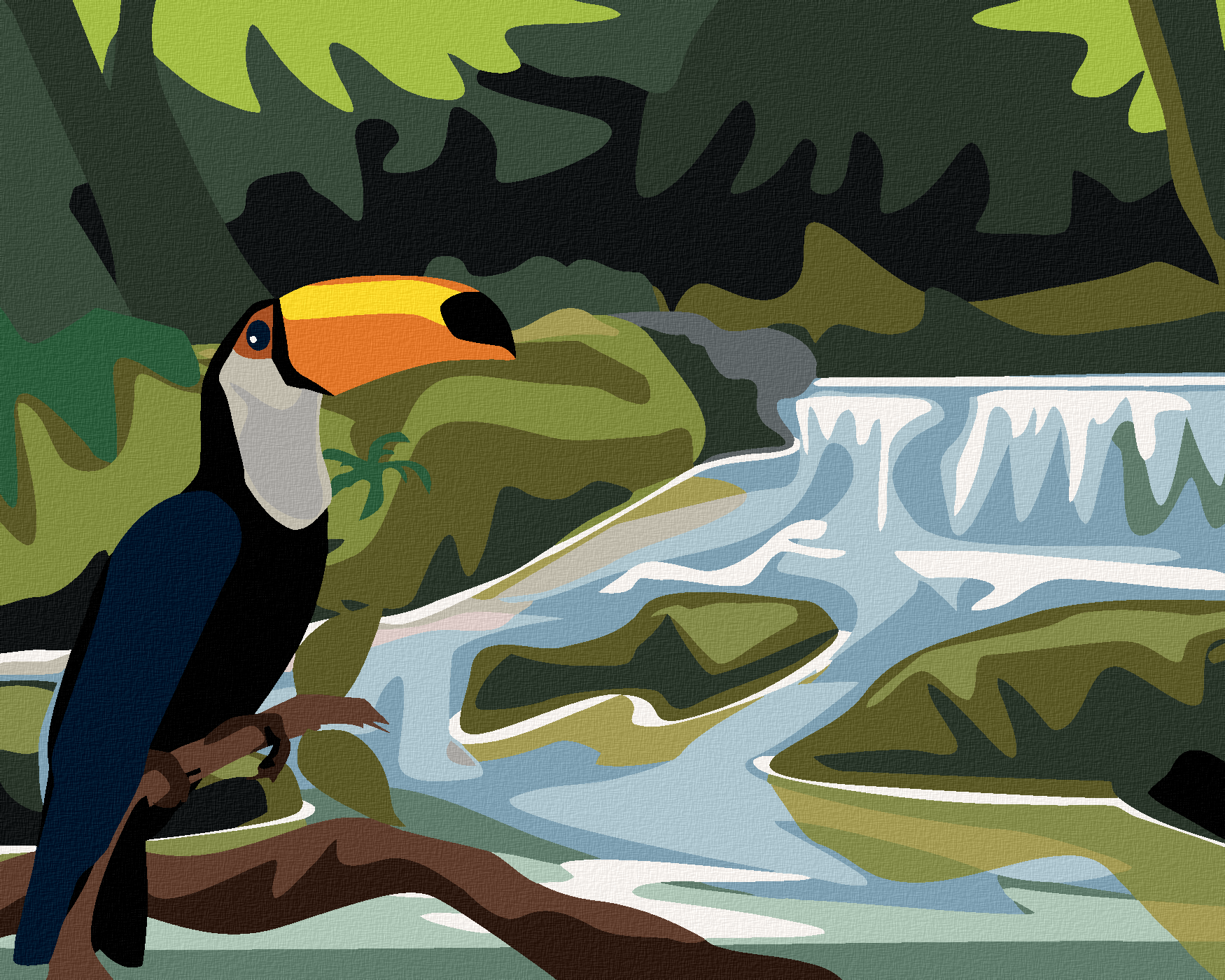 Malen nach Zahlen - TUKAN MIT WASSERFALL