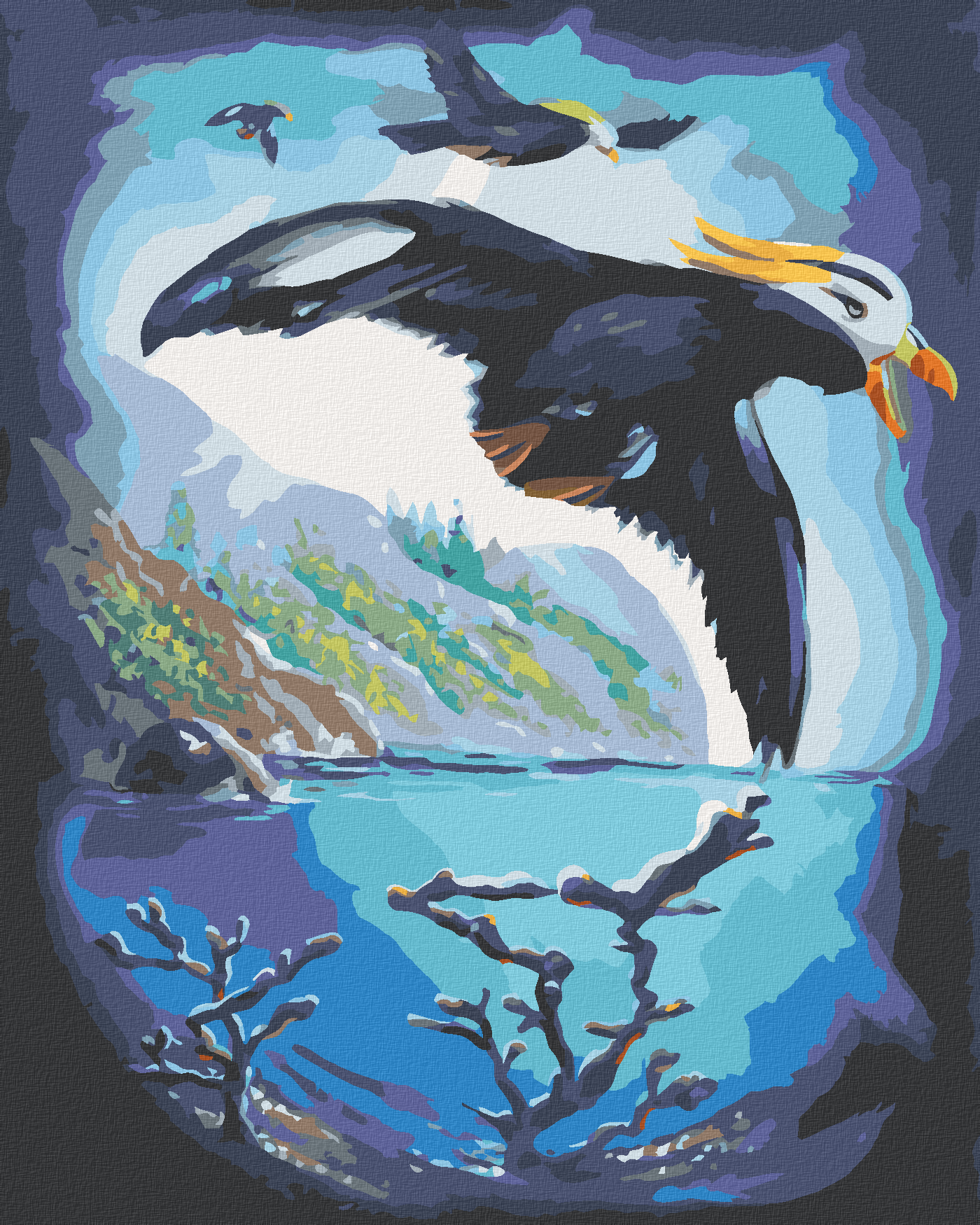Malen nach Zahlen - VOGEL IM FLUG UND KORALLEN IM MEER (D. RUSTY RUST)